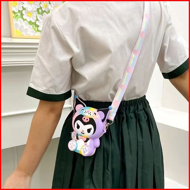 Lnr Shop Tas Selempang Resleting Silicone 3d Anak Anak Lucu Motif Sanrio Kuromi My Melody Dompet Koin Kecil Trendy Denga