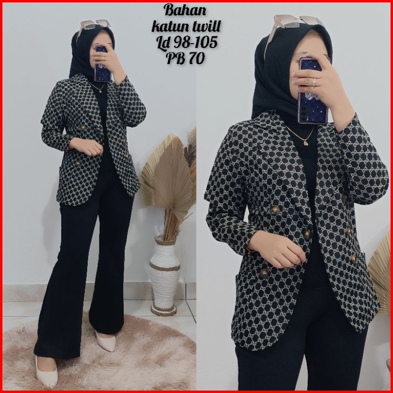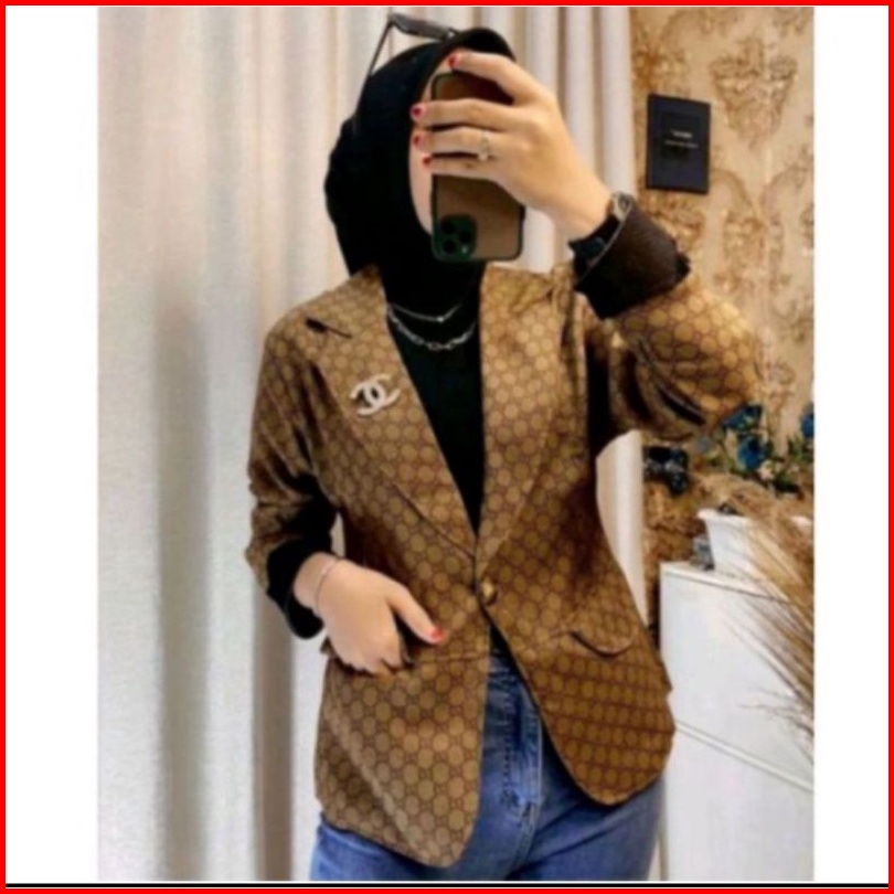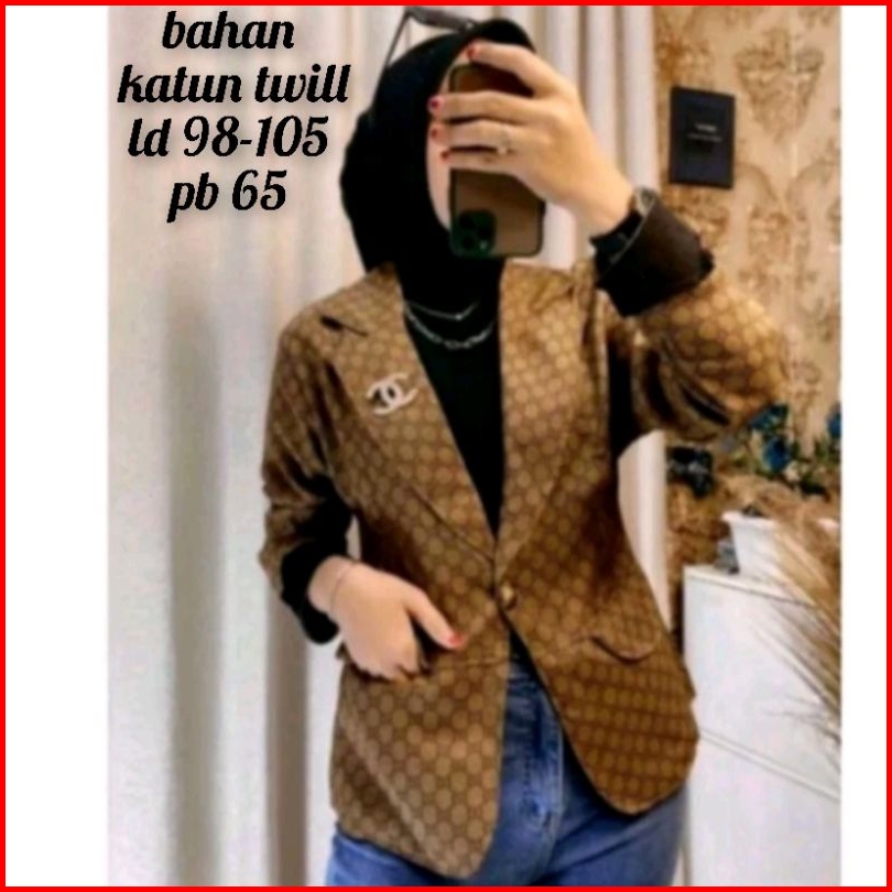 Blazer Wanita Viral Motif Full Print Ready Stock