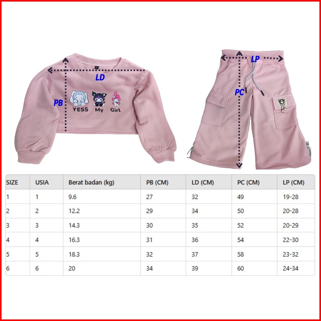 Masyken Setelan Anak Perempuan Crop Top Usia 1-6 Tahun
