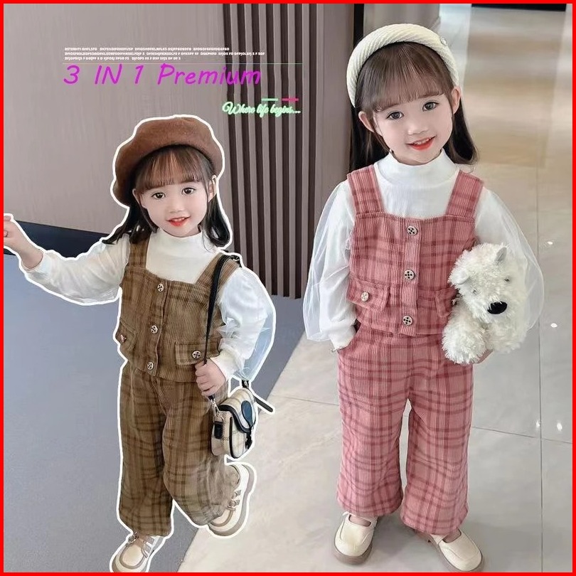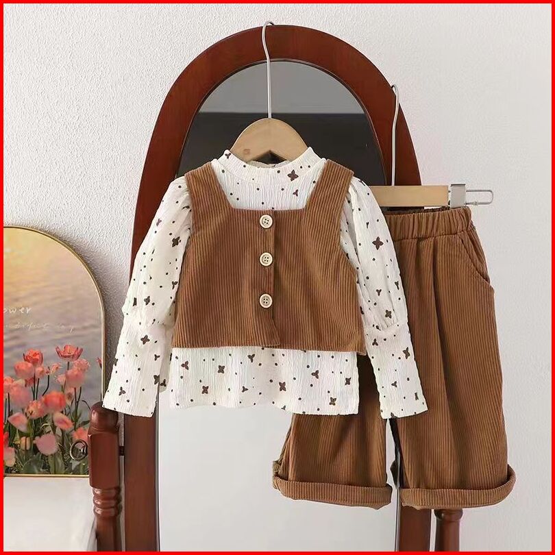 Kf Cat Setelan 3 In 1anak Perempuan Lengan Panjang Katun Celana Panjang Korean Style Usia 1-4 Tahun