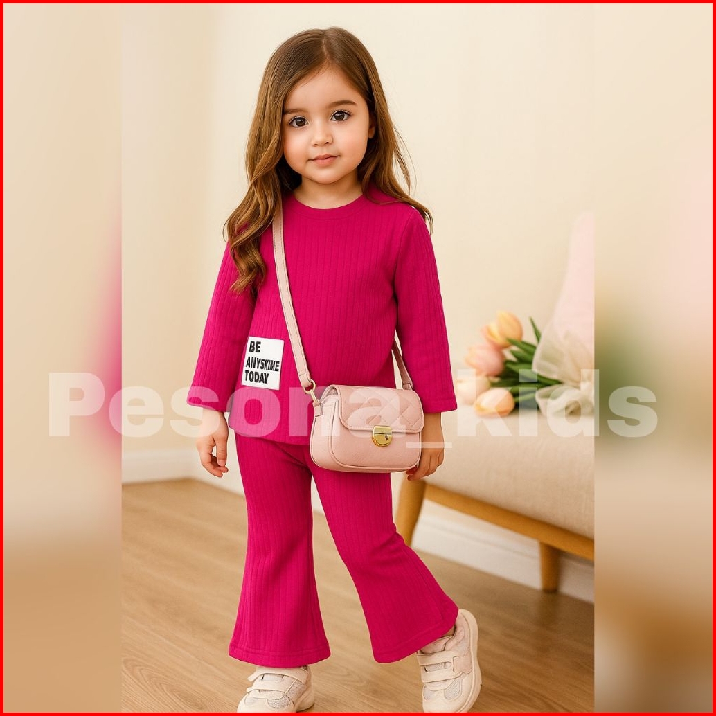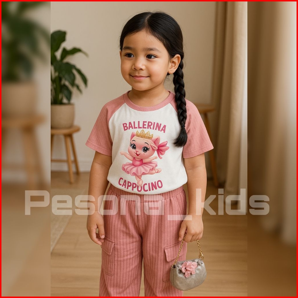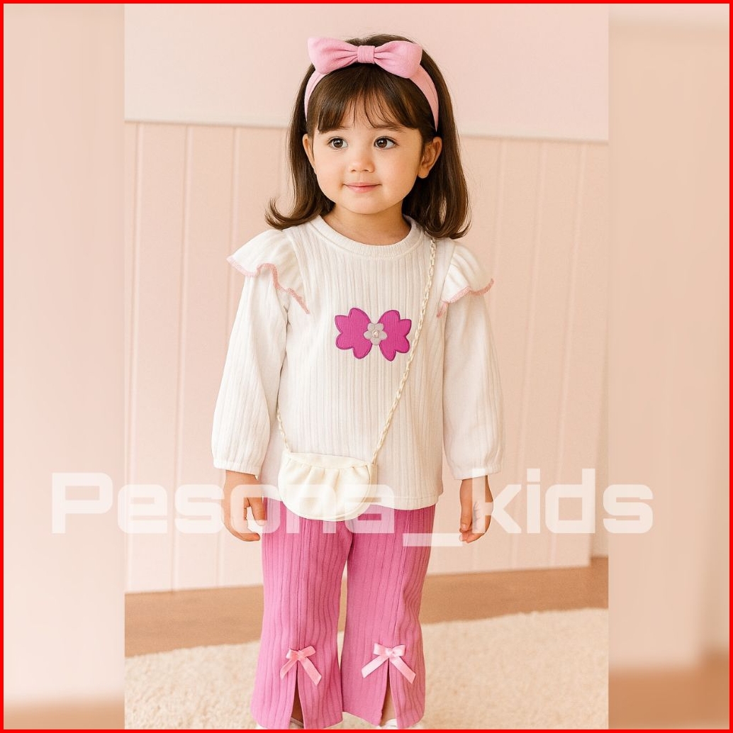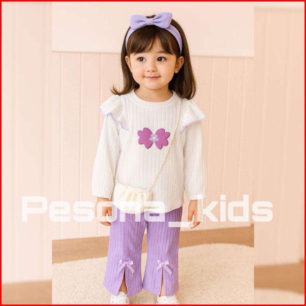 Setelan Kuromi Anak Perempuan Celana Cargo Bahan Knit 1-10 Tahun