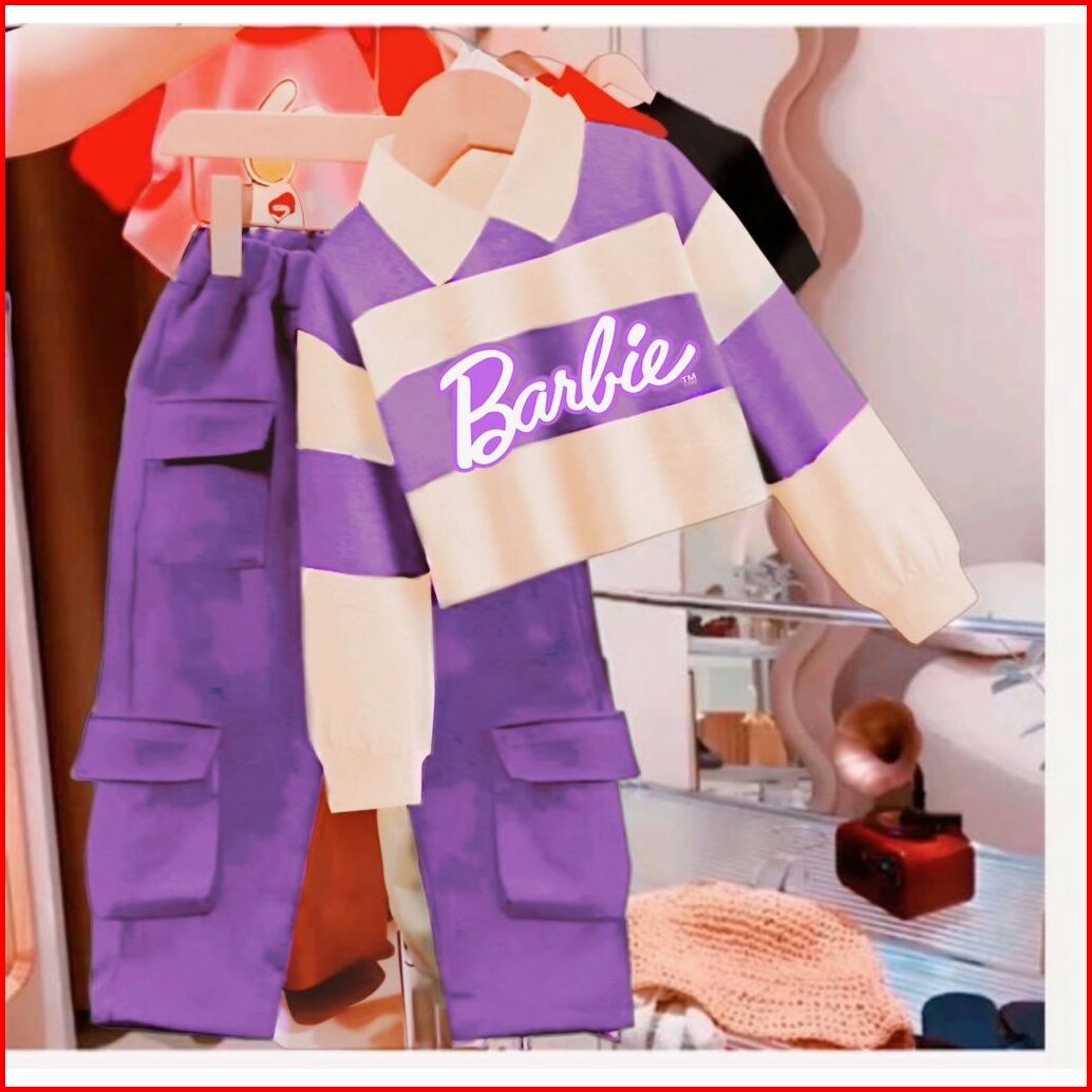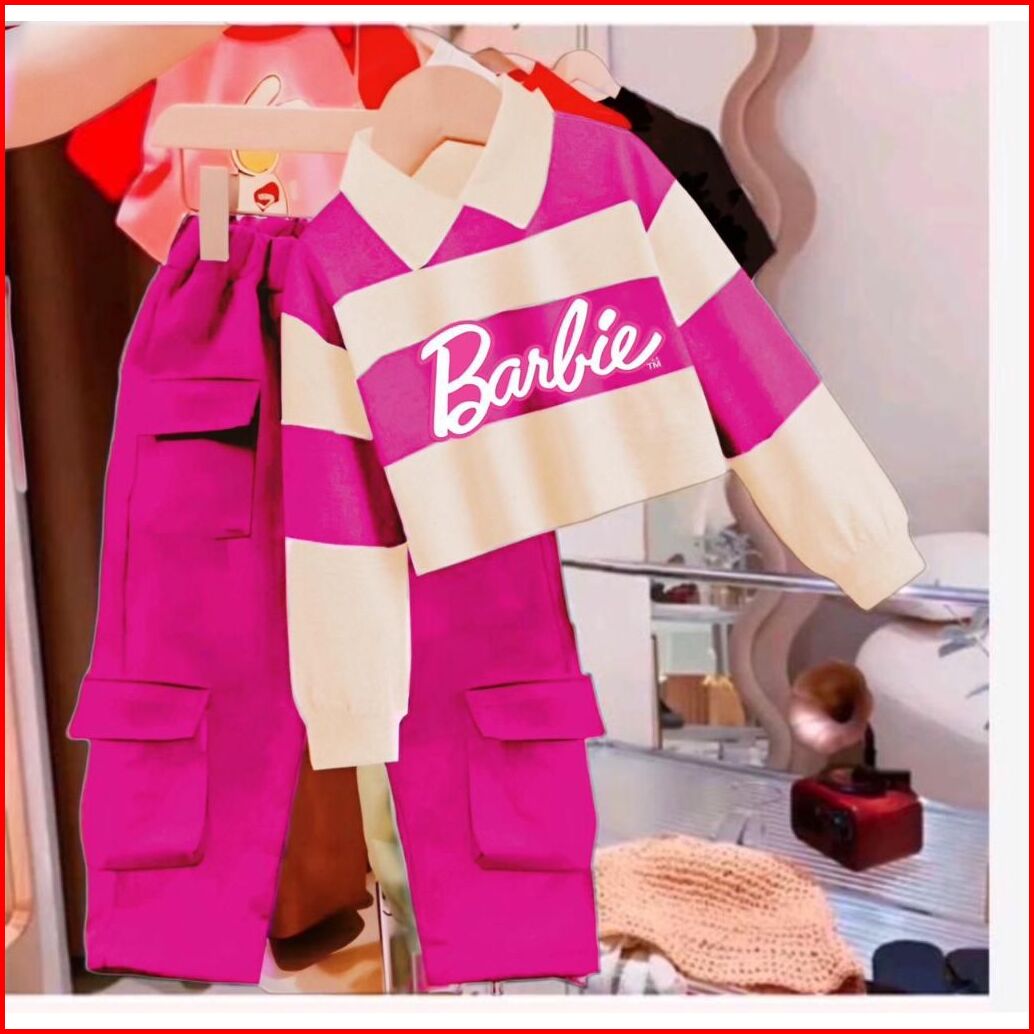 Setelan Anak Cewek Terbaru Model Kerah Crop Top Barbie Cargo Stripe 1-12 Thn