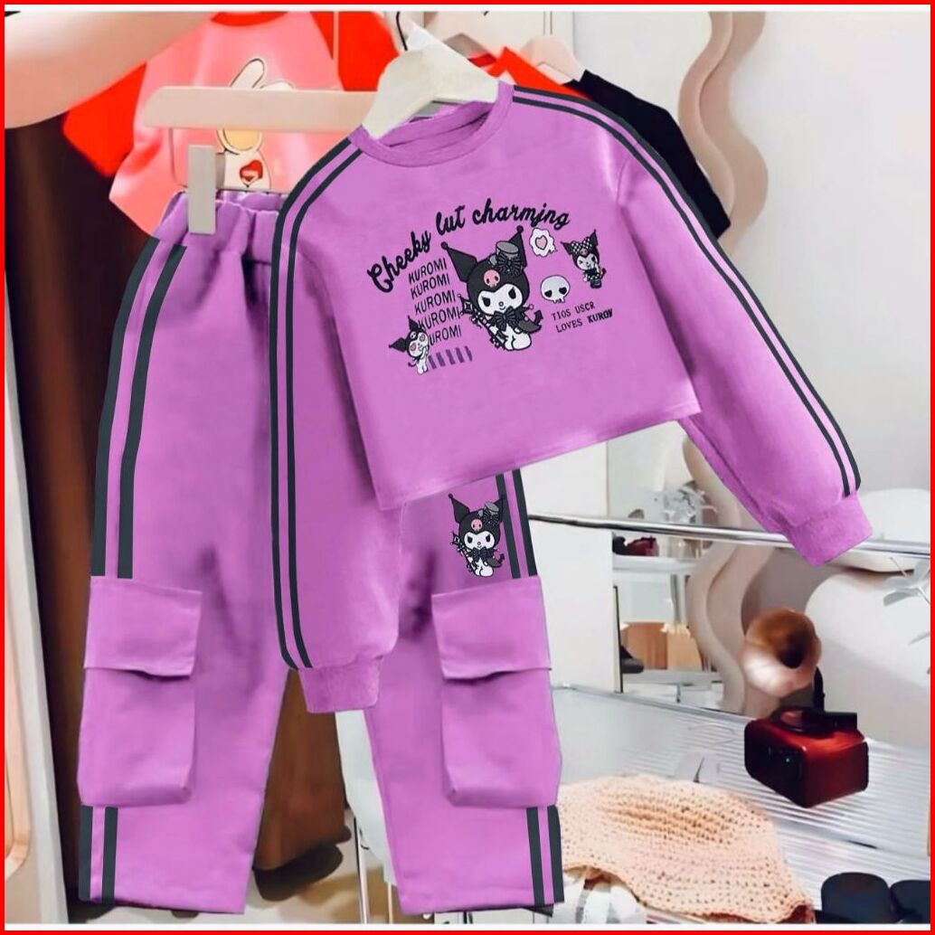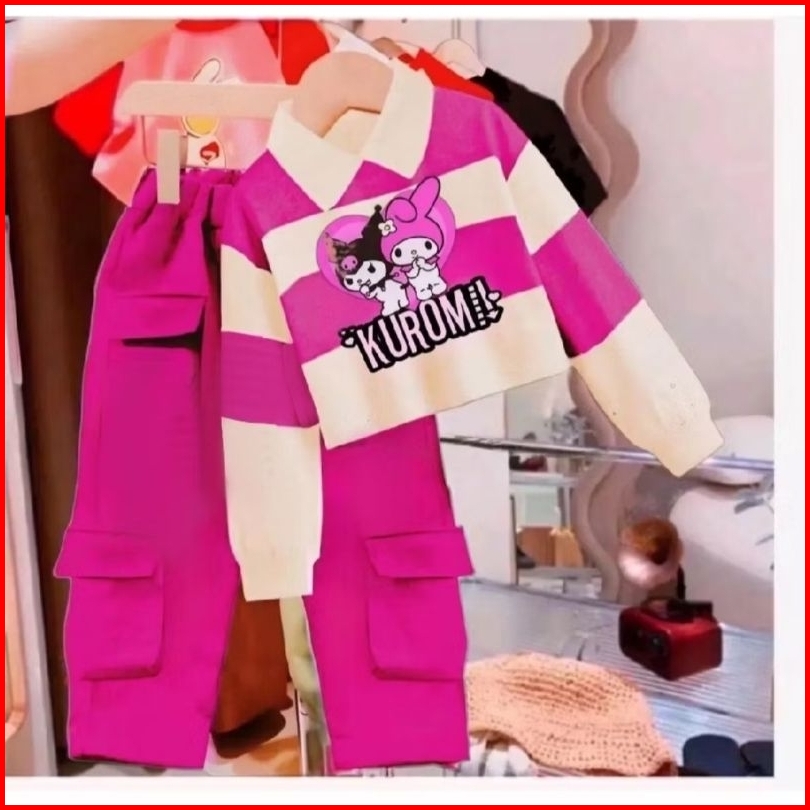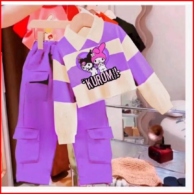 Set Kuromi Anak Perempuan Setelan Sweater Kuromi Crop Cargo Fashian Anak Baju Dan Celana