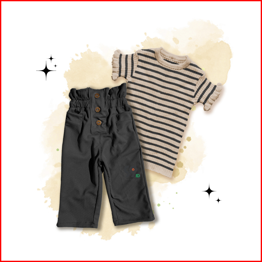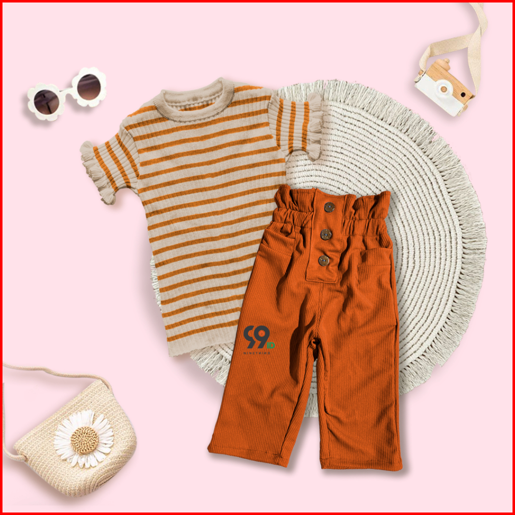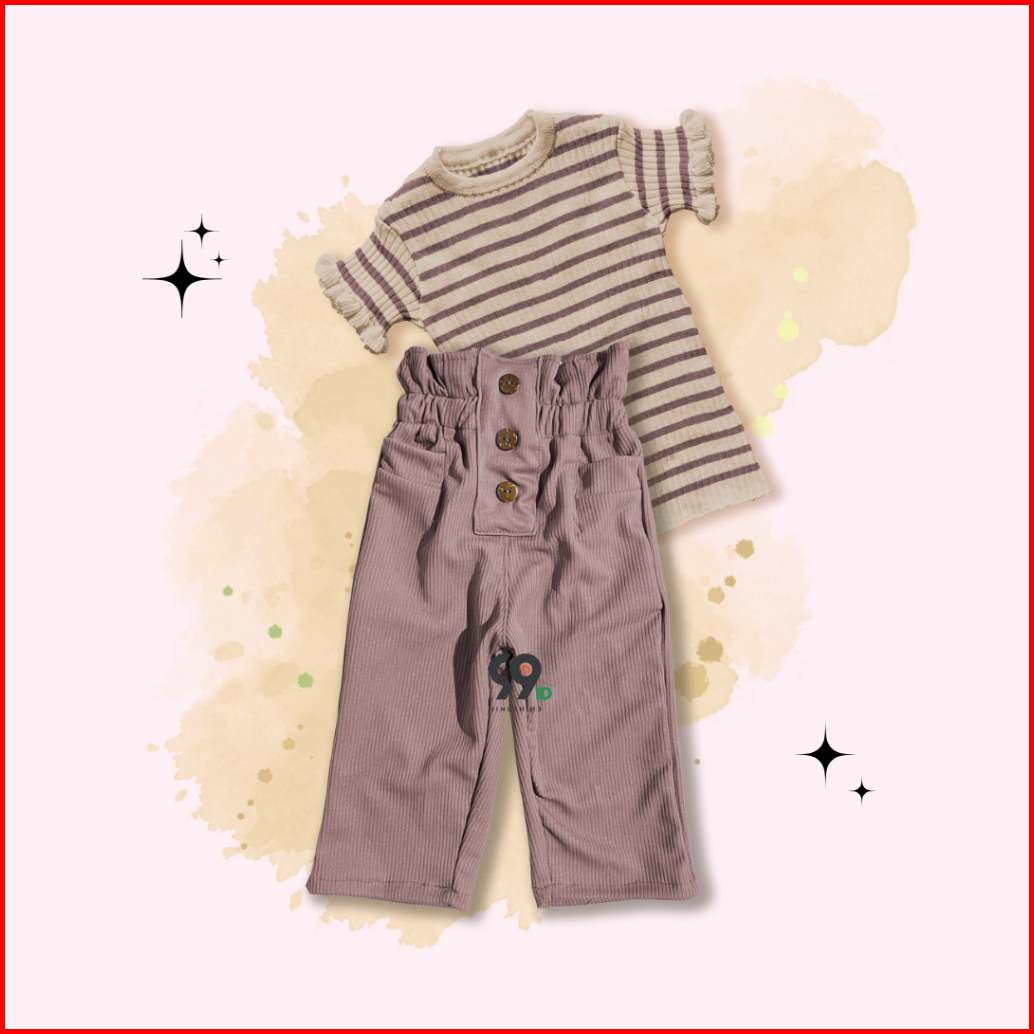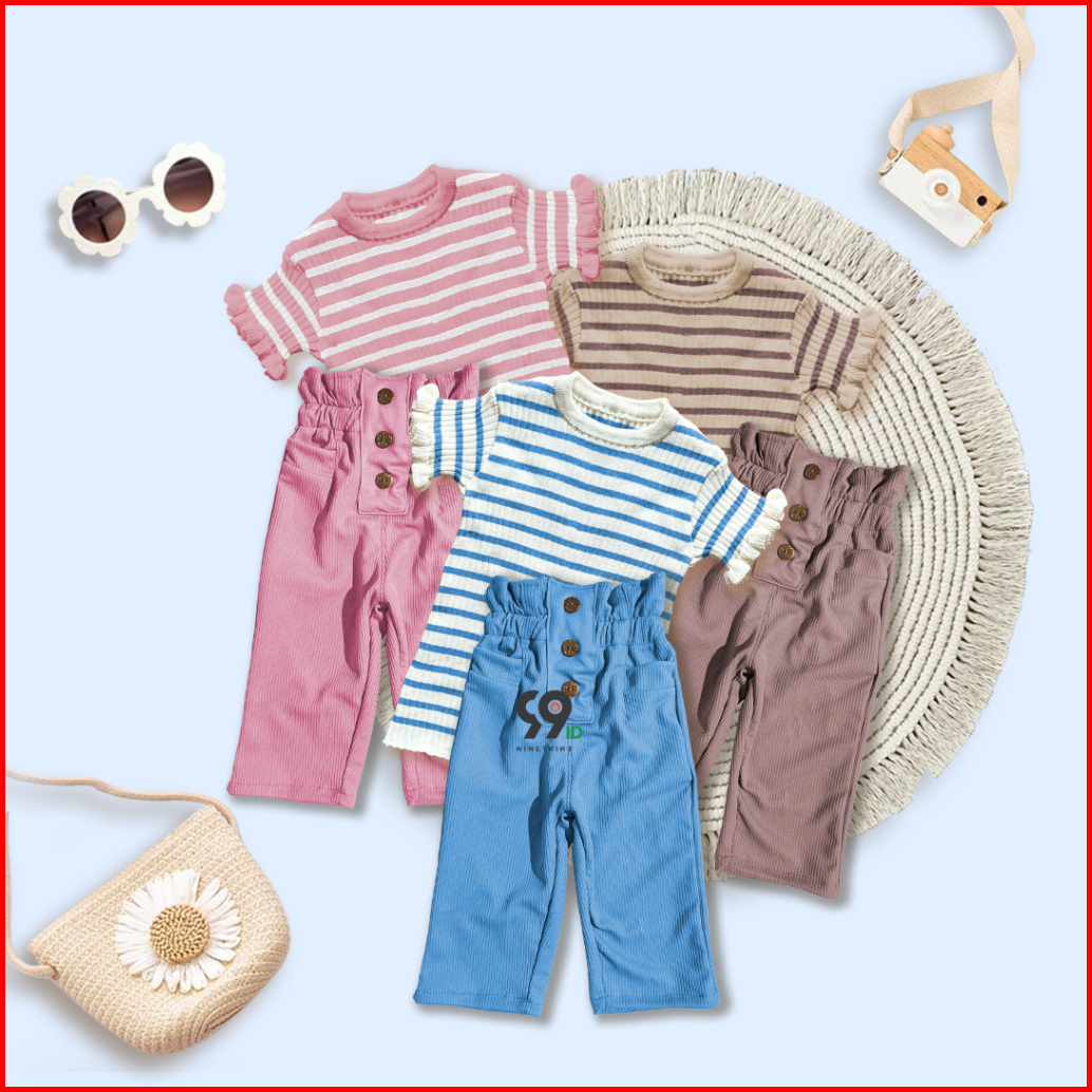 Setelan Anak Perempuan Atasan Rajut Haruka Stripe Curly Pants Lolita Knit
