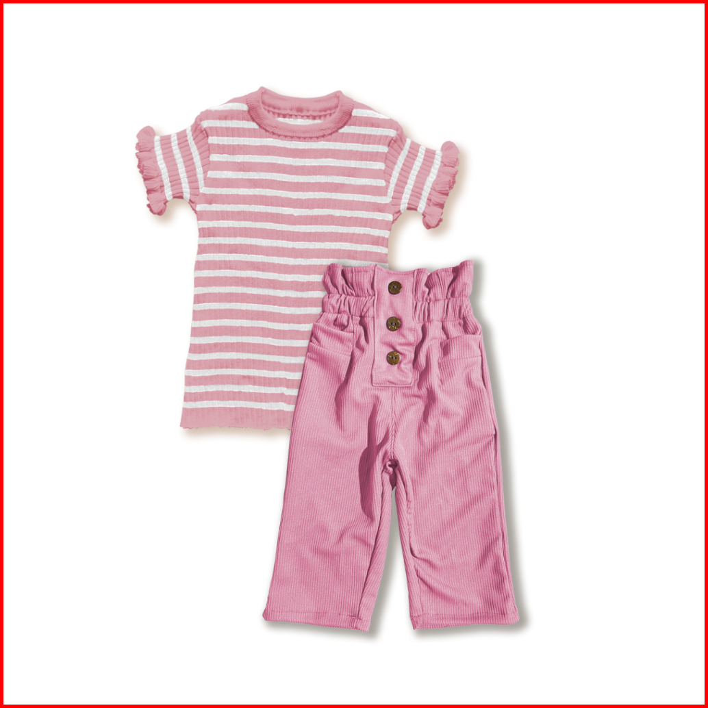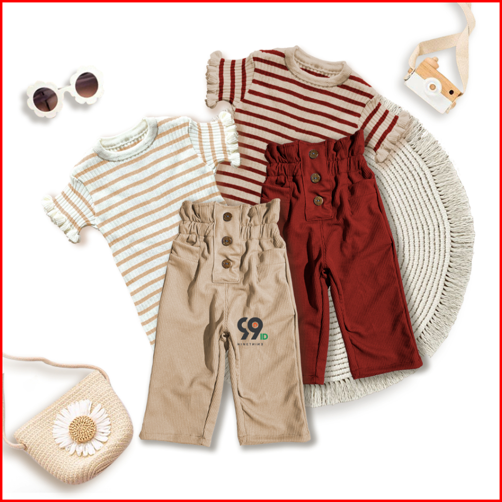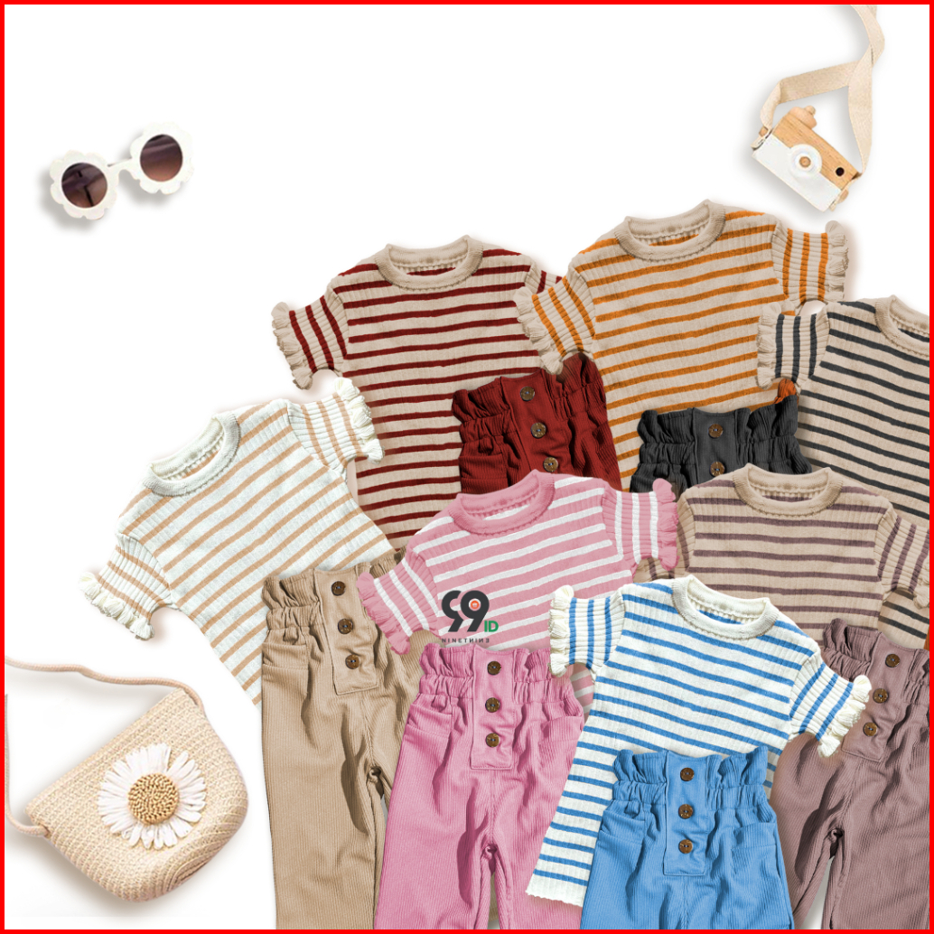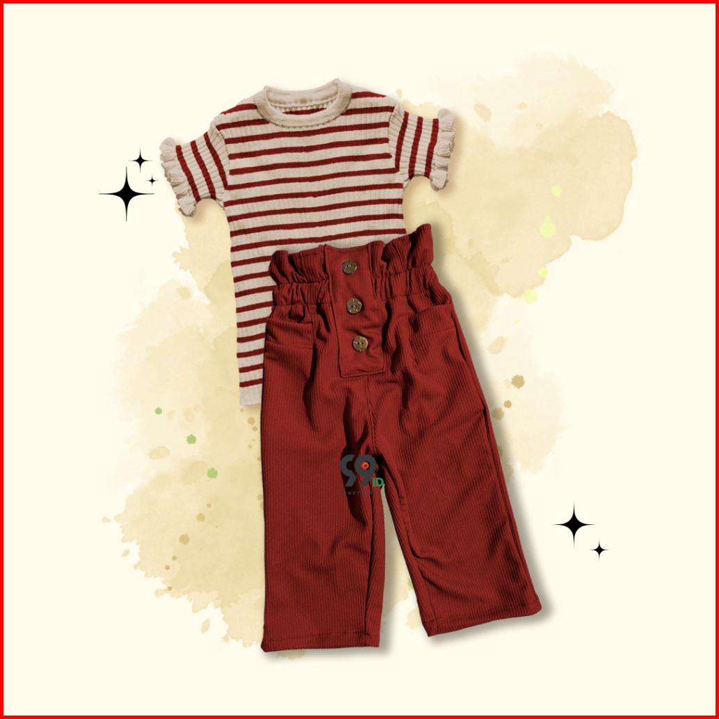 Setelan Anak Perempuan Atasan Rajut Haruka Stripe Curly Pants Lolita Knit