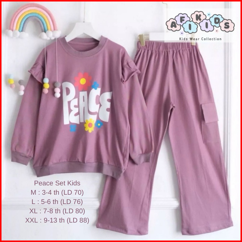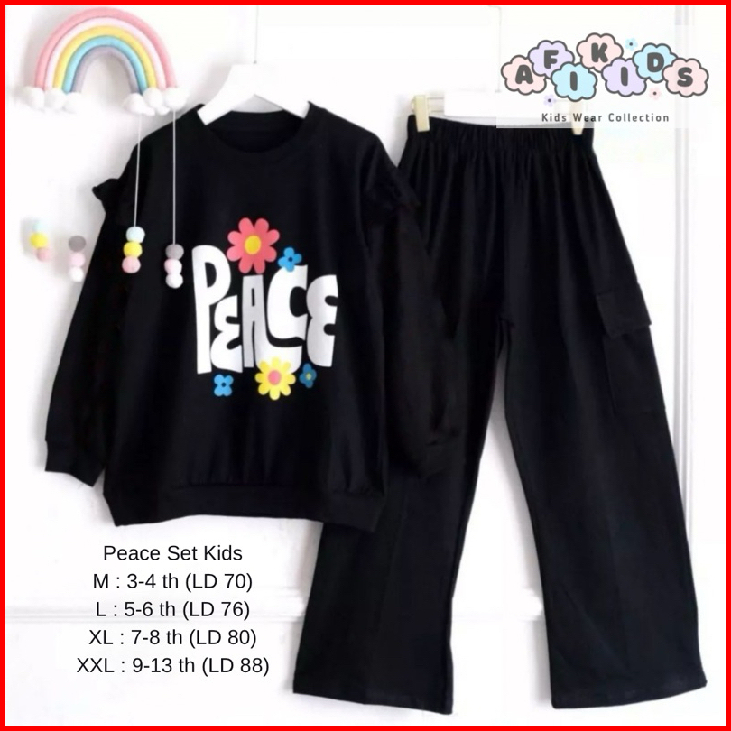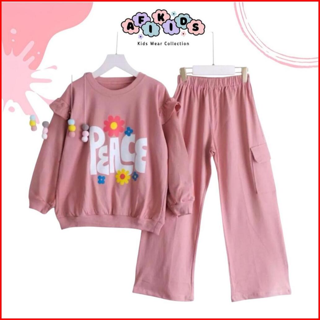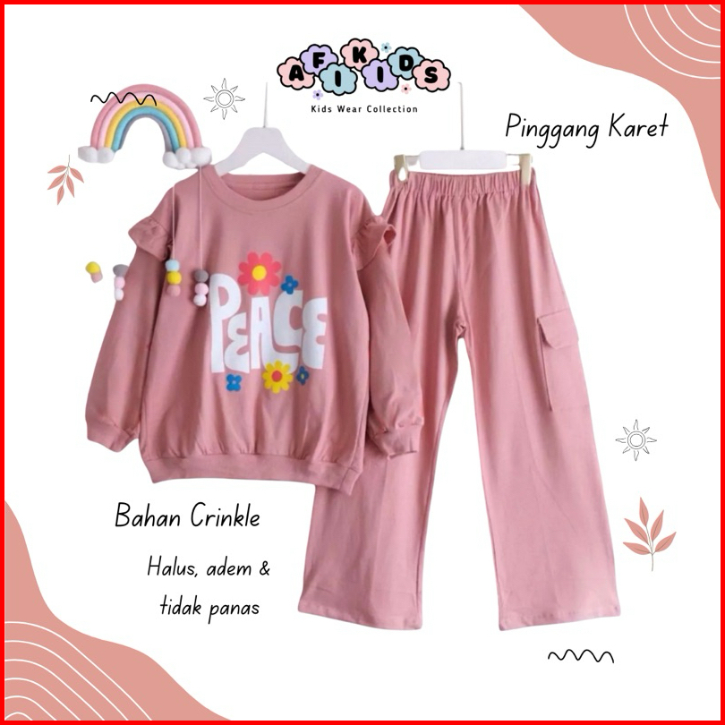 Peace Set Kids 3thn-13thn Celana Cargo Crinkle Printing Setelan Peace One Set Anak Remaja Setelan Anak Kekinian Setelan