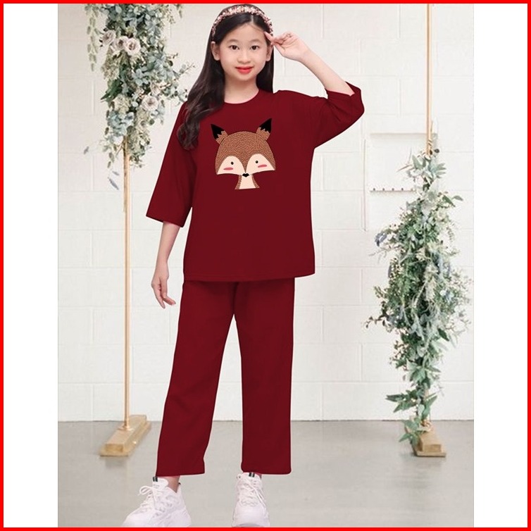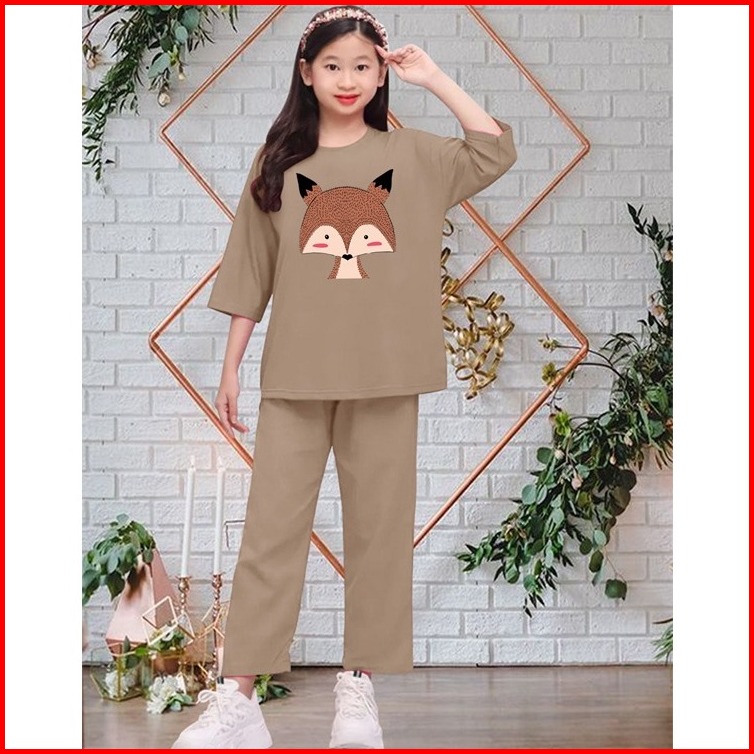 Setelan Anak Perempuan Fox Usia 5-10 Tahun Atasan Dan Celana Anak Perempuan