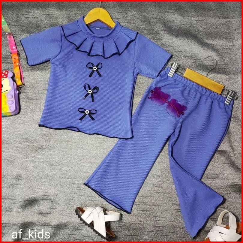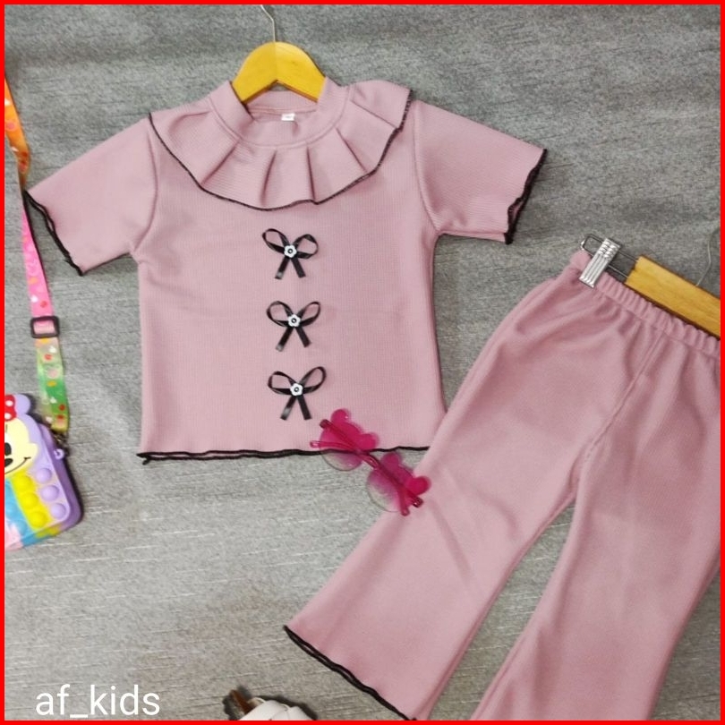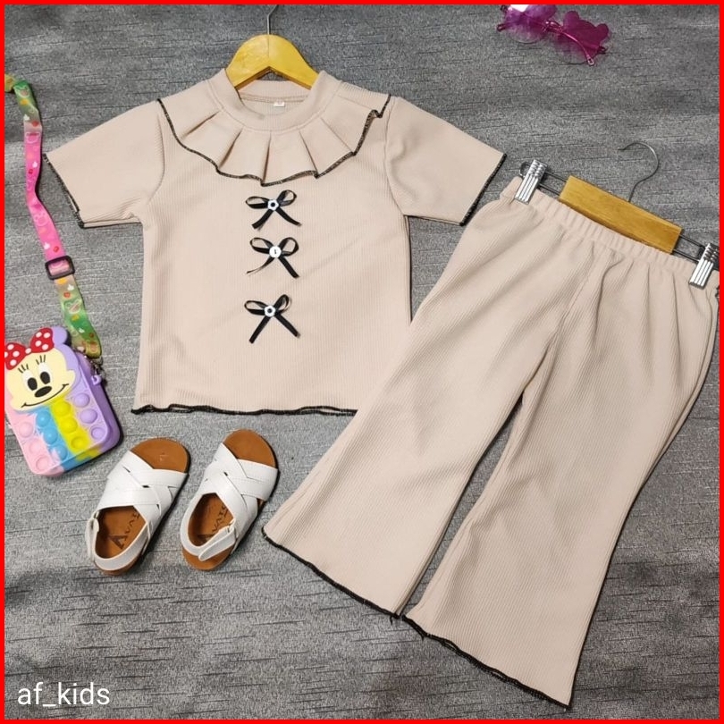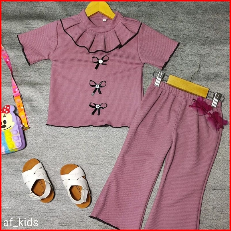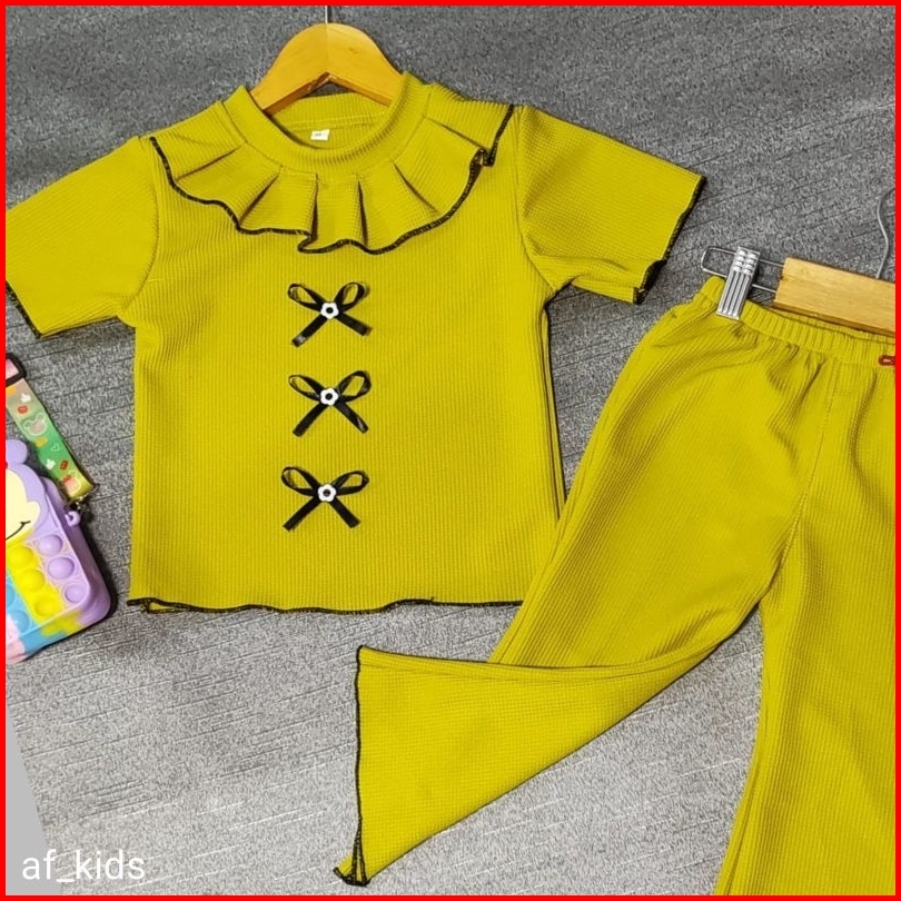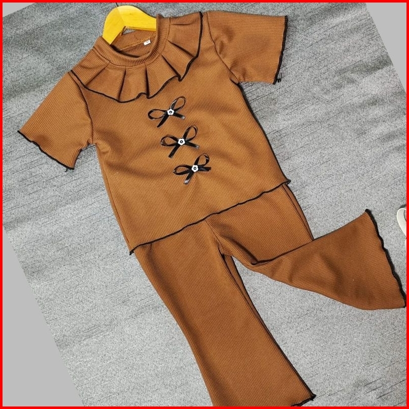 Setelan Baju Anak Perempuan Knit Waffle Variasi Pita Depan 1-10 Tahun