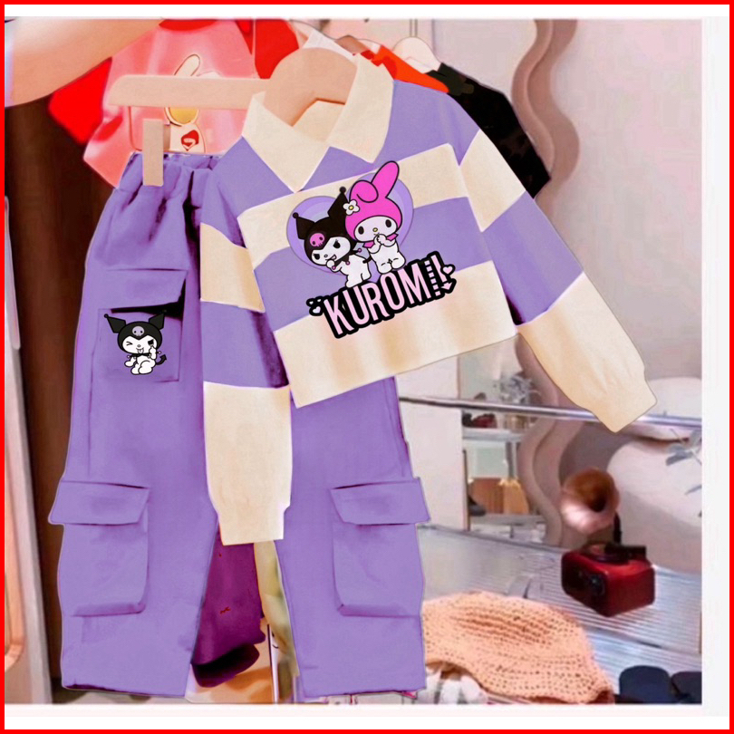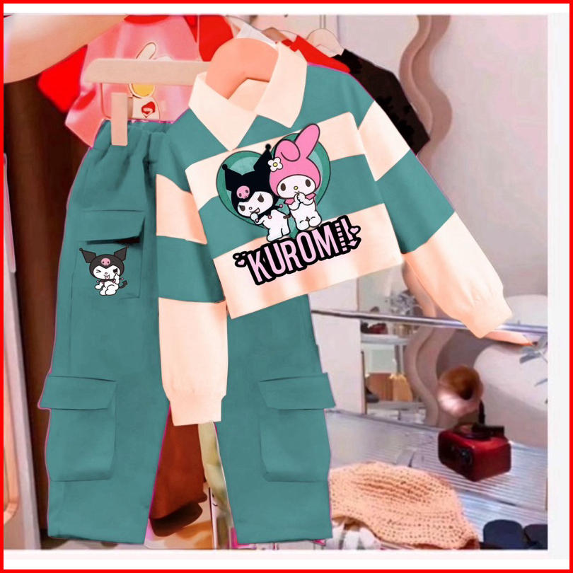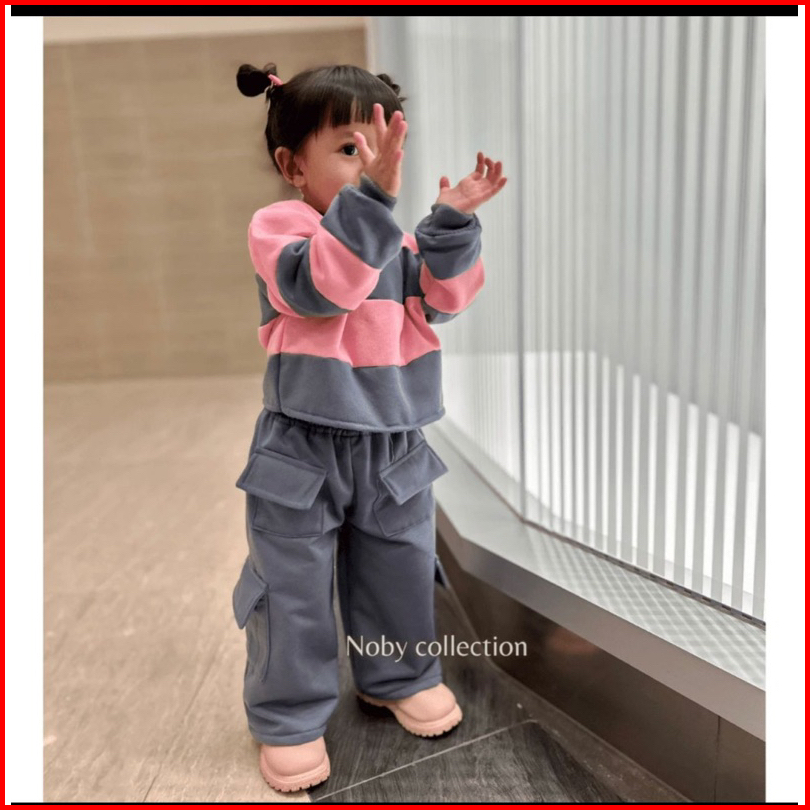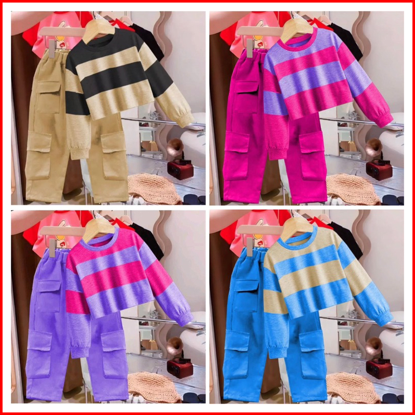 Setelan Anak Perempuan Setelan Cargo Combinasi Wanra Terlaris Viral 1-5 Tahun