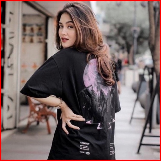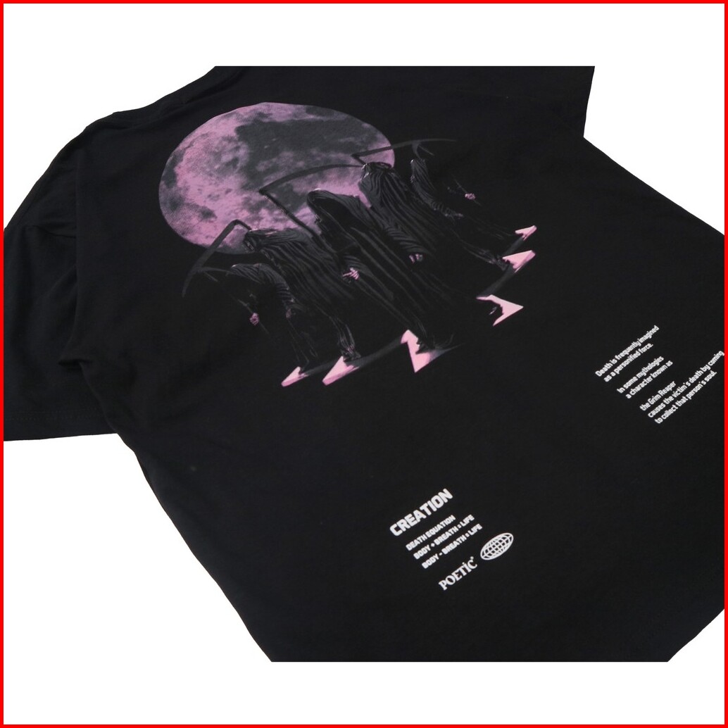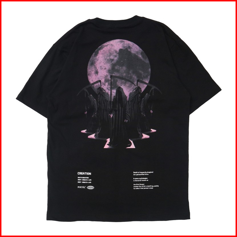 Poeticluzien Kaos Boxy Fit Oversize T-shirt Grim Moon Pria Dan Wanita