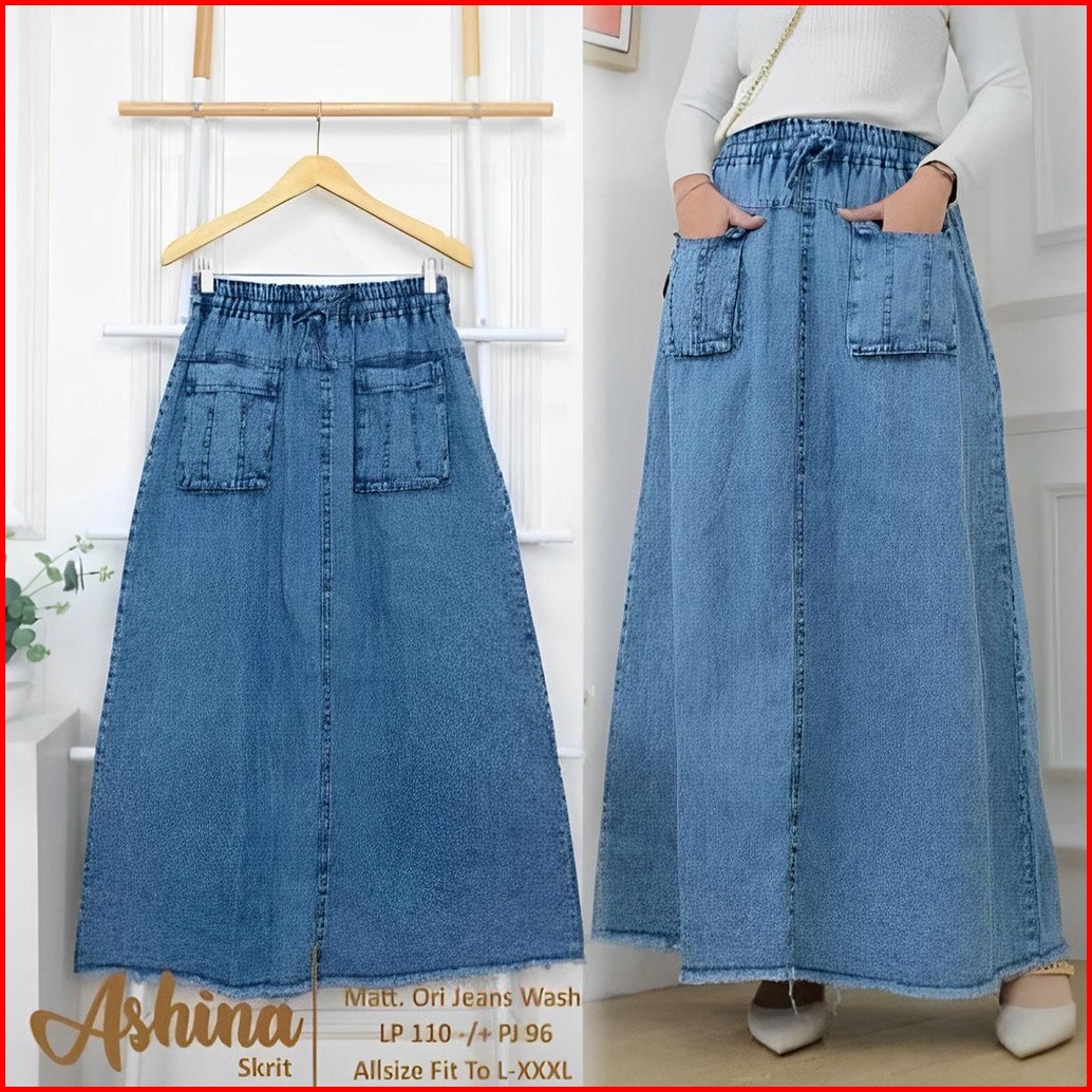 Dhina Rok Jeans Rawis Ashina Skirt Jeans Wanita