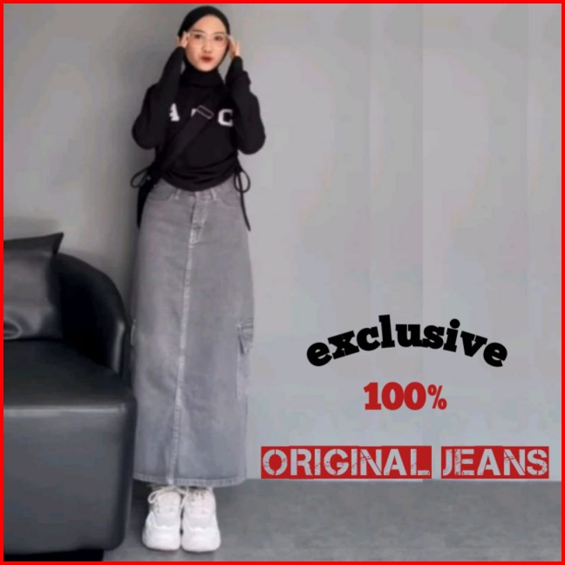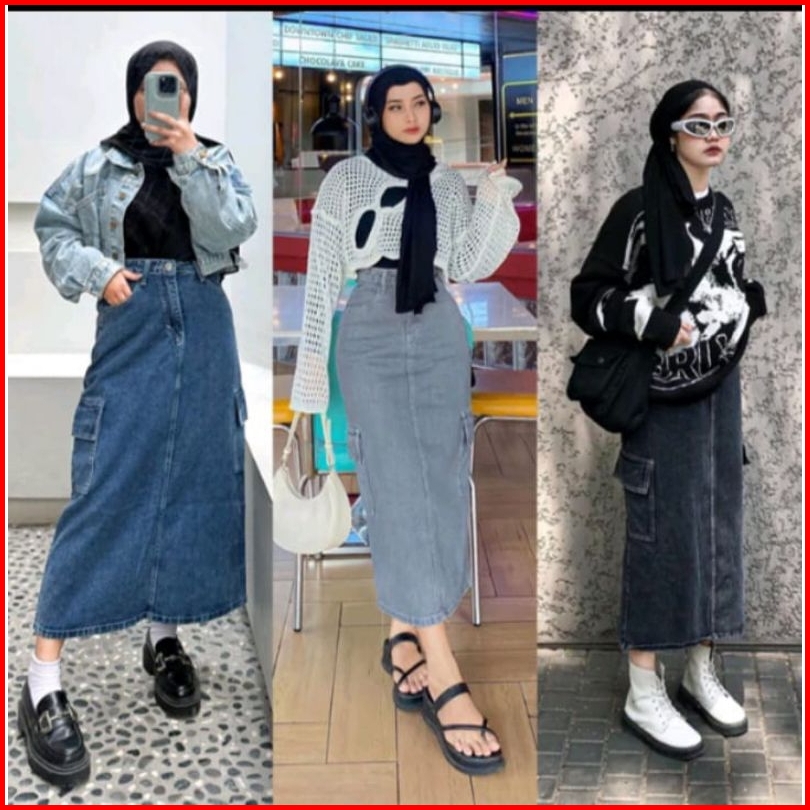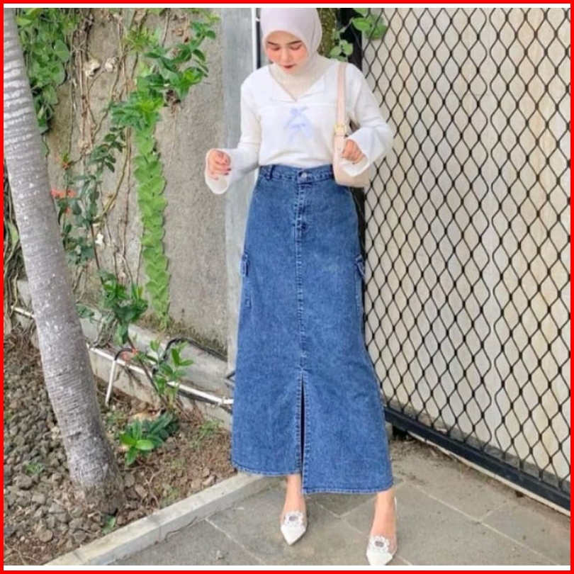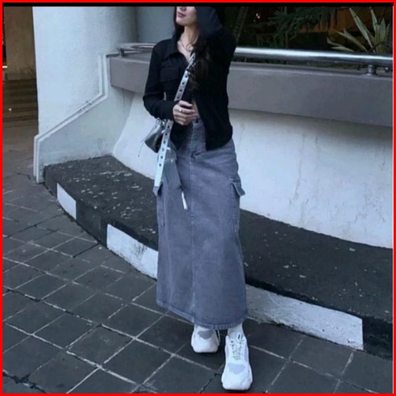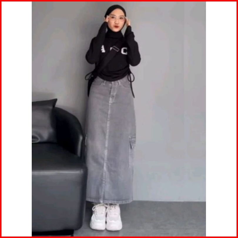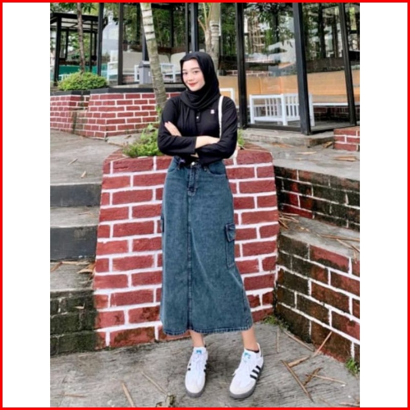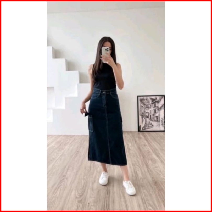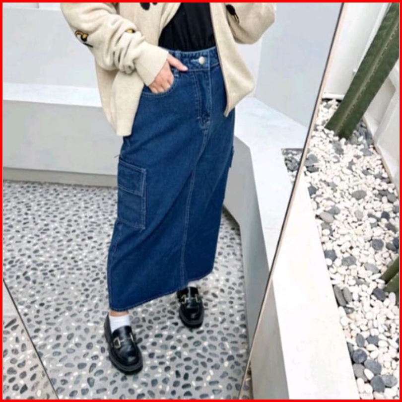 Rok Cargo Jeans Wanita Korean Style Rok Cargo Highwaist Jeans Wanita