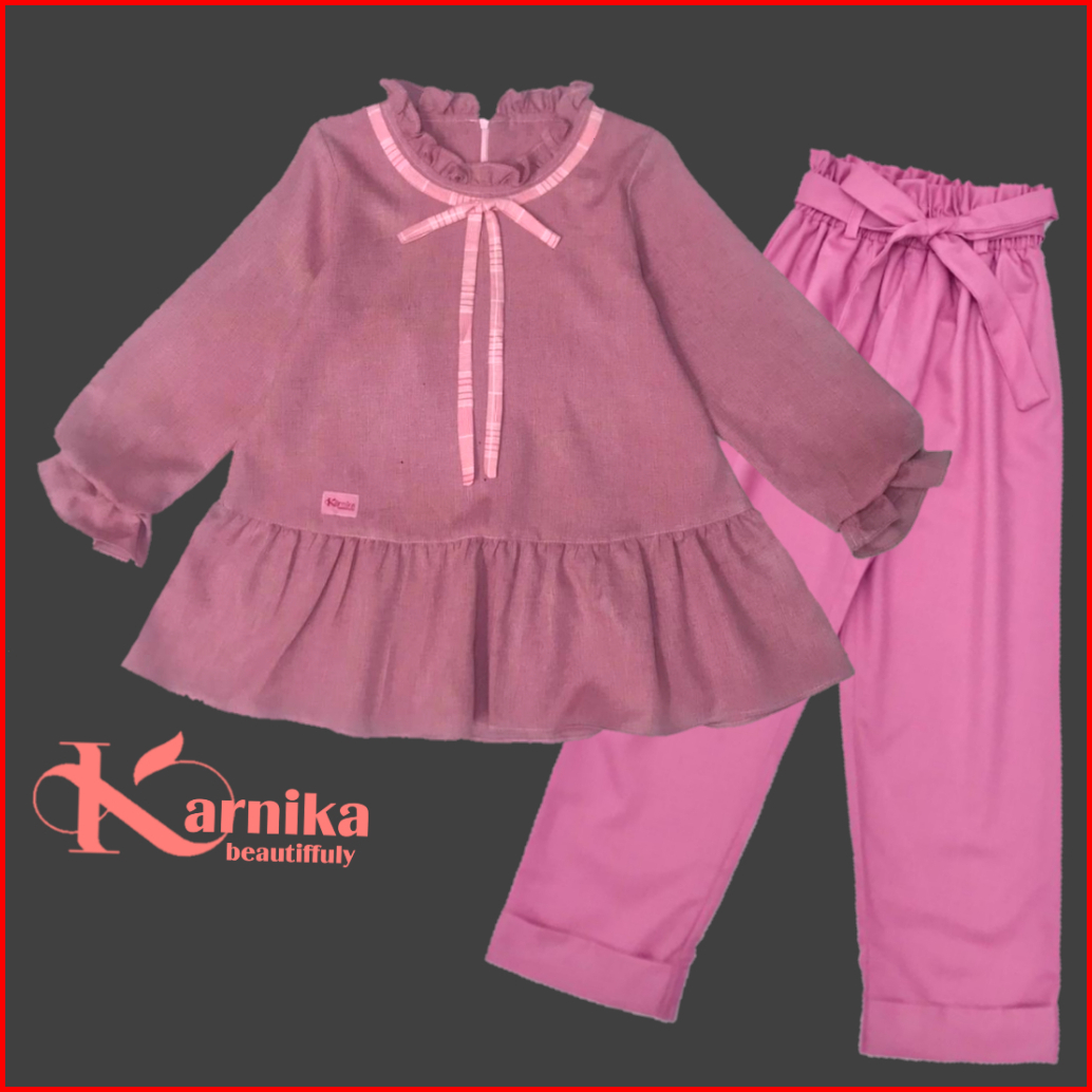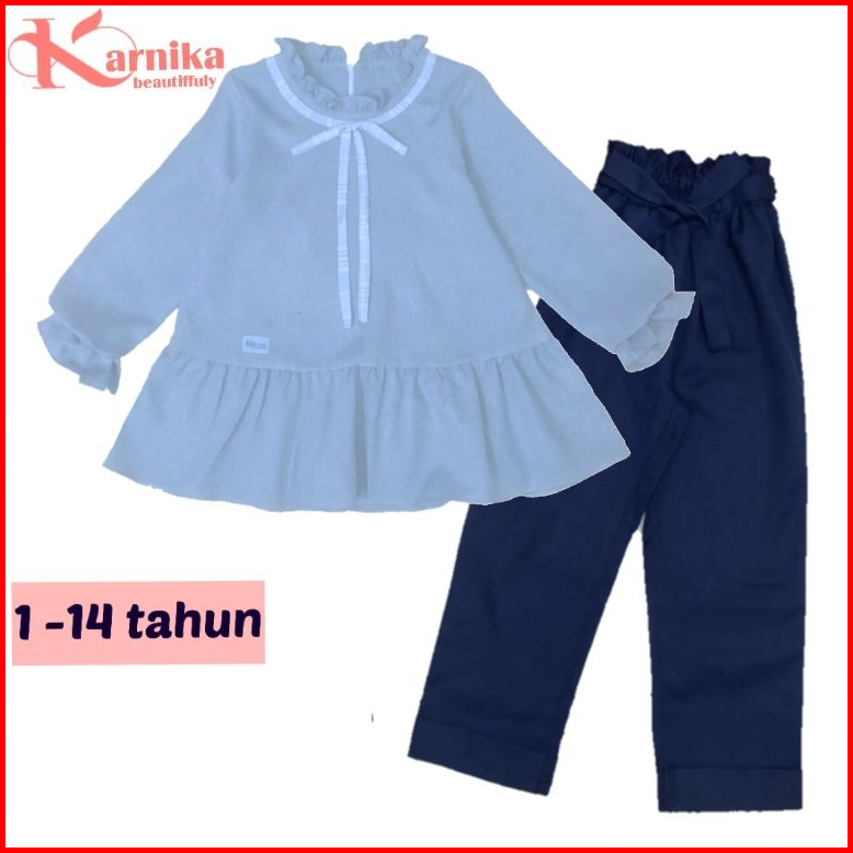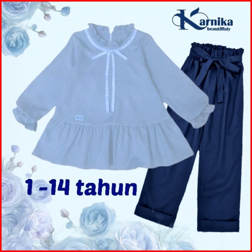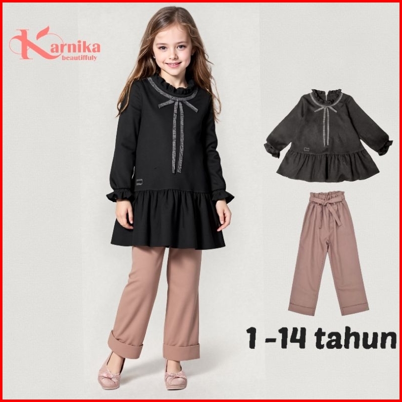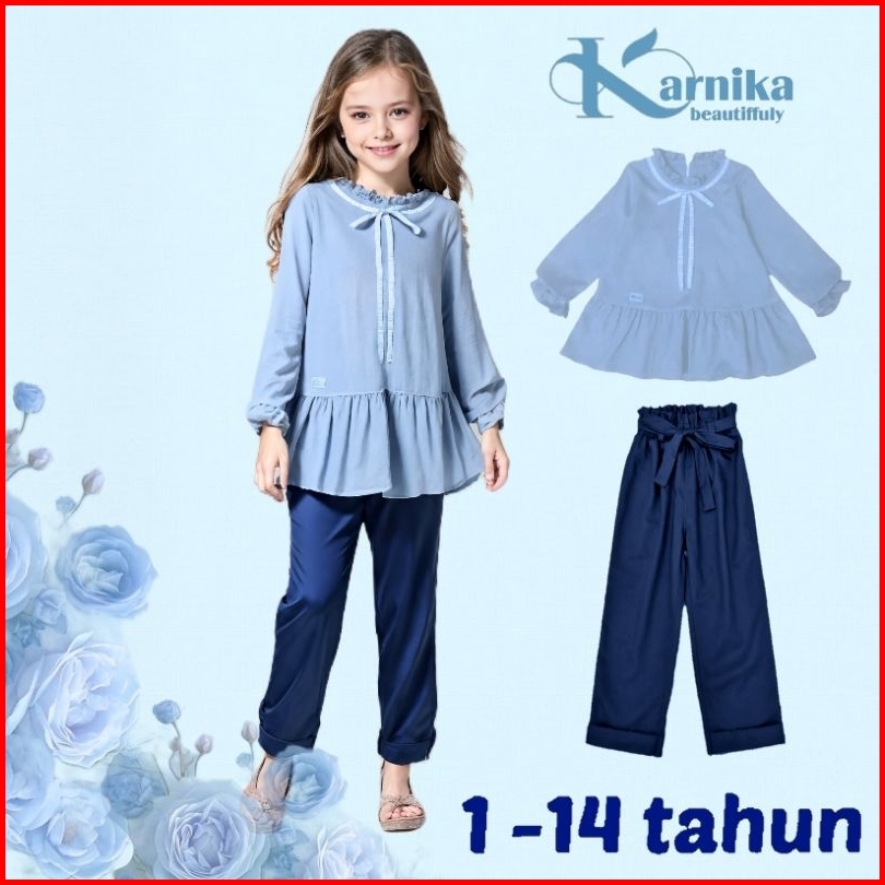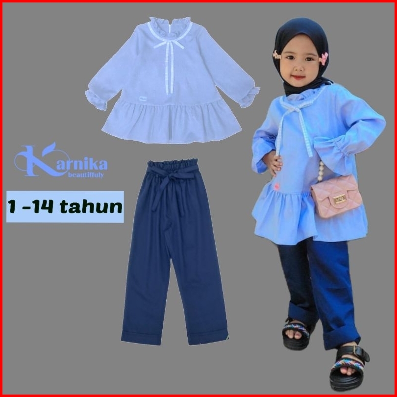 Karnika Set Baju Anak Perempuan 1-14 Tahun Muslim Anak Cewek Atasan Blouse Korean Celana Panjang