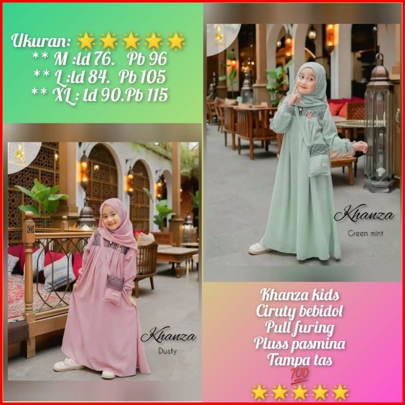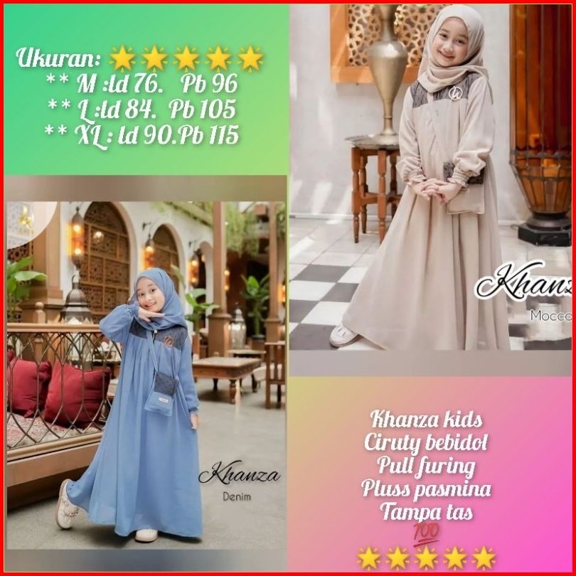 Khanza Kids Syar I Anak Pasmina Usia 5 - 13 Thn Gamis Anak Tanggung Baju Muslim Anak Bahan Ciruty Bebidol Baju Syar I An