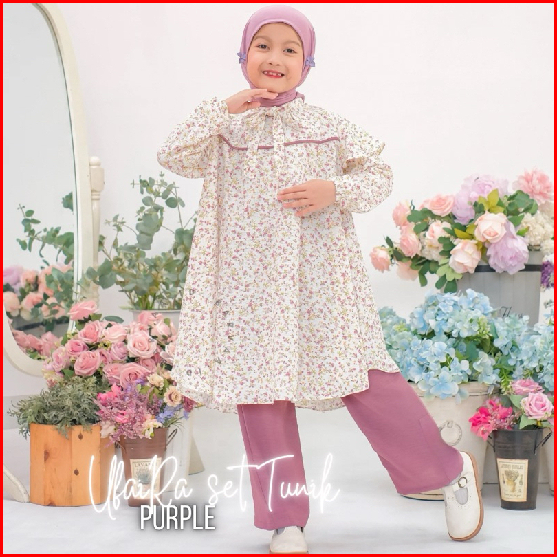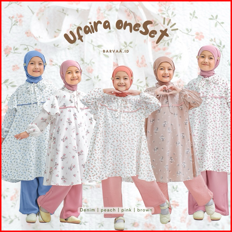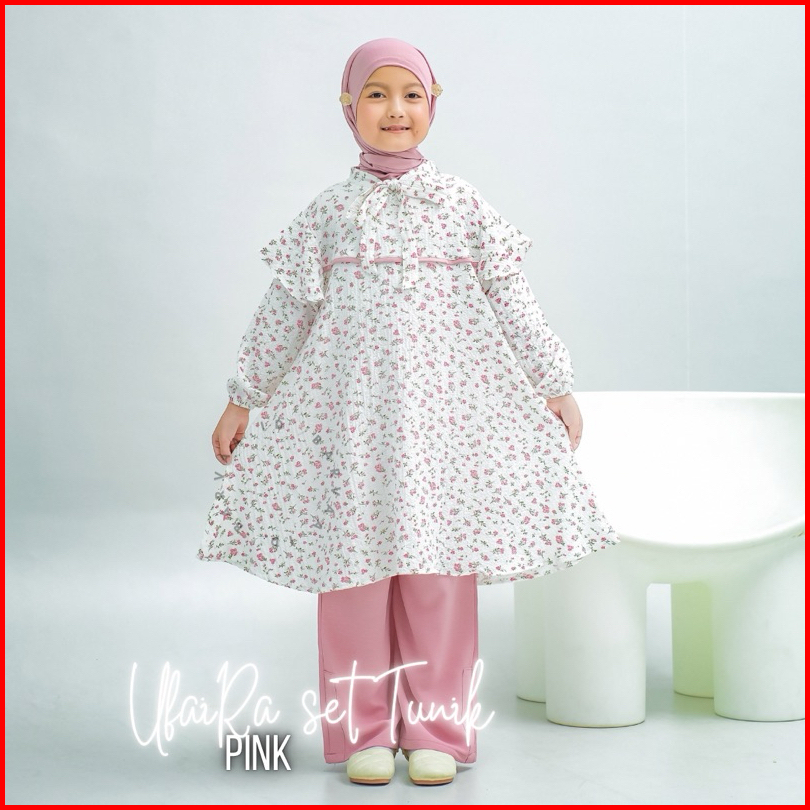 Barvaa.id - Ufaira Oneset Long Tunik Celana Anak Perempuan Tanpa Hijab