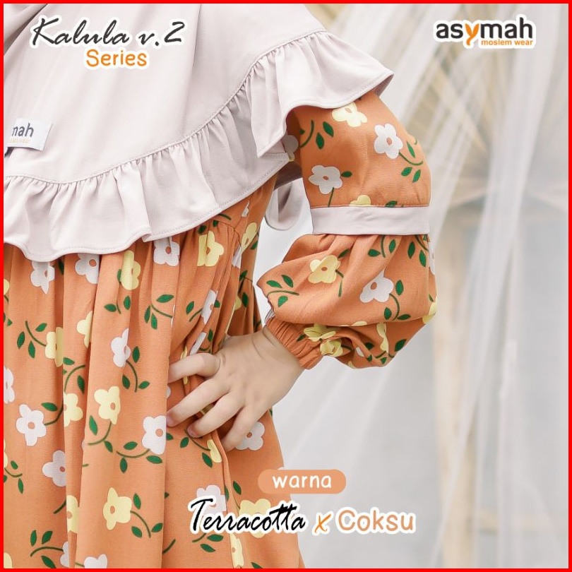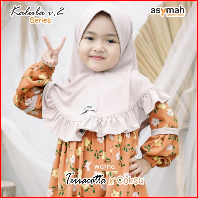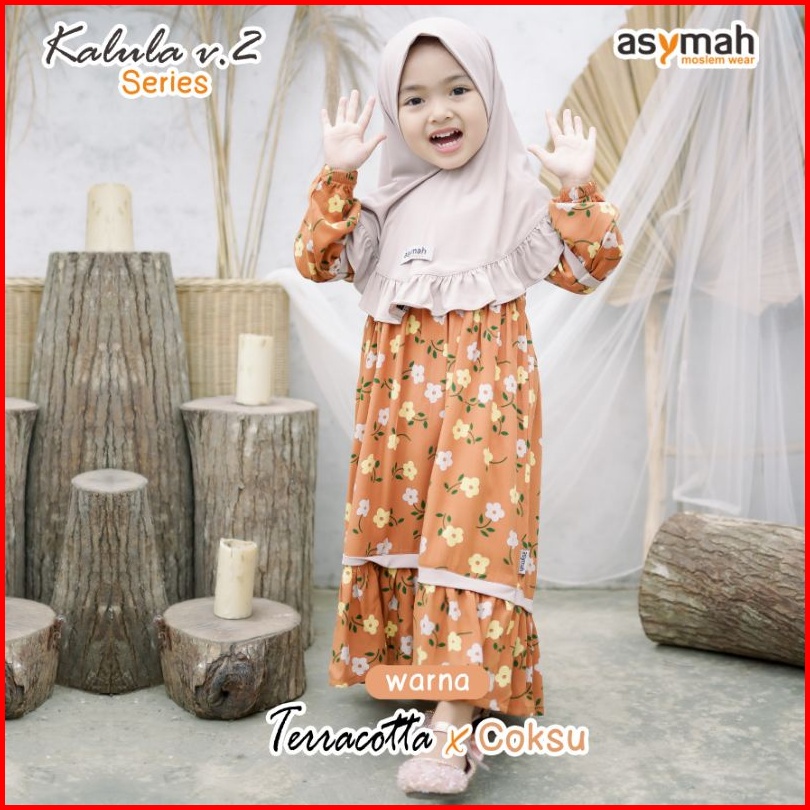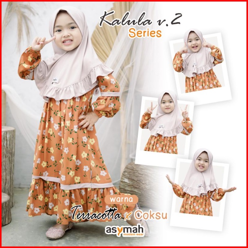 Gamis Daily Anak Perempuan Set Kerudung Bahan Rayon Lembut Dan Adem Kalula Series Warna Terracotta By Asymah