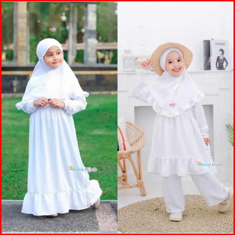 Gamis Set Hijab Anak Putih Untuk Manasik Gamis Putih Bw Gamis Manasik