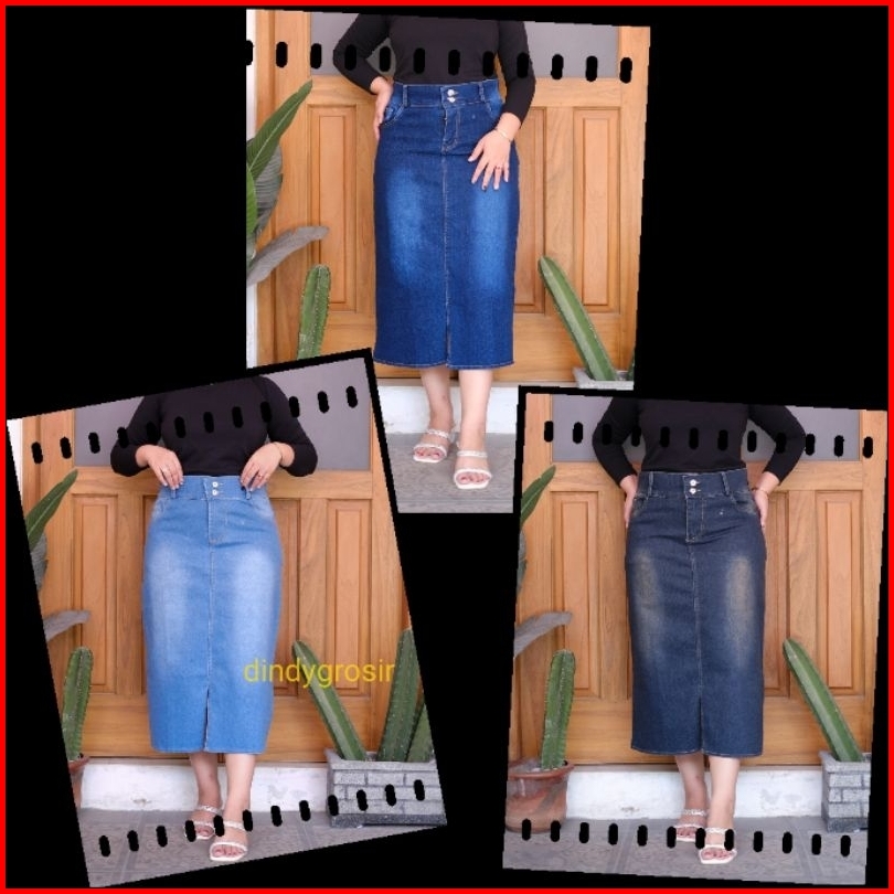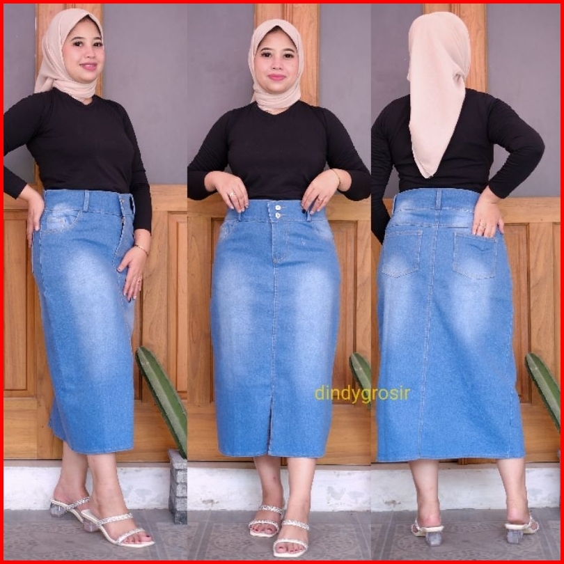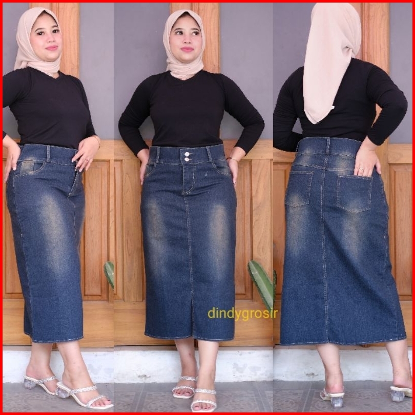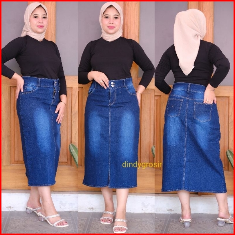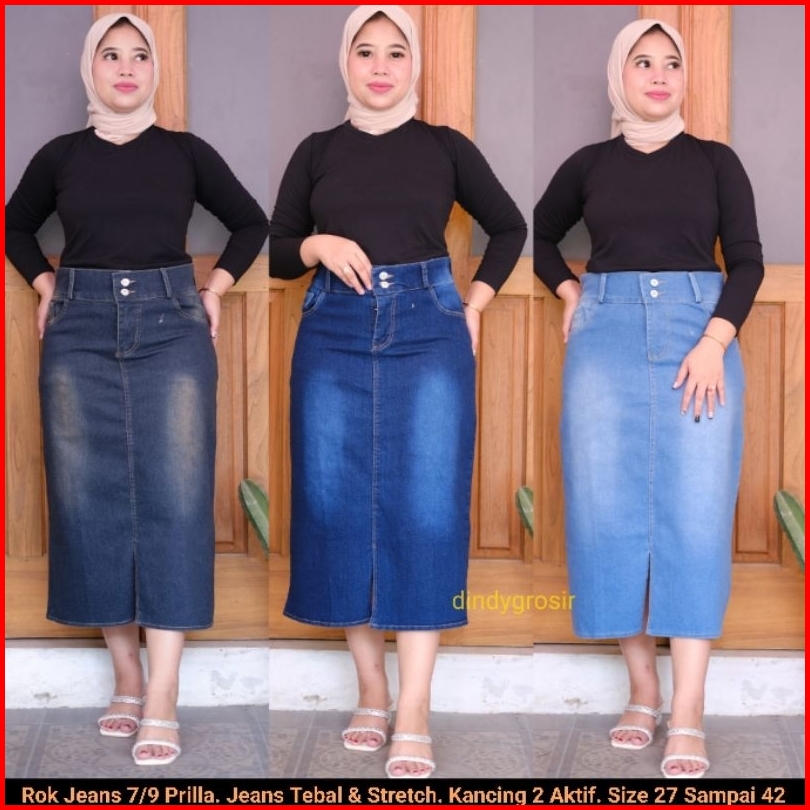 Rok Jeans Midi 7 9 Prilla Tebal Dan Stretch Kancing