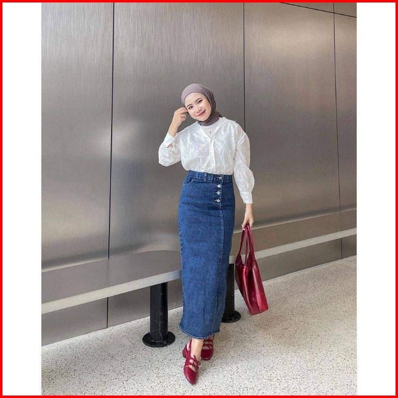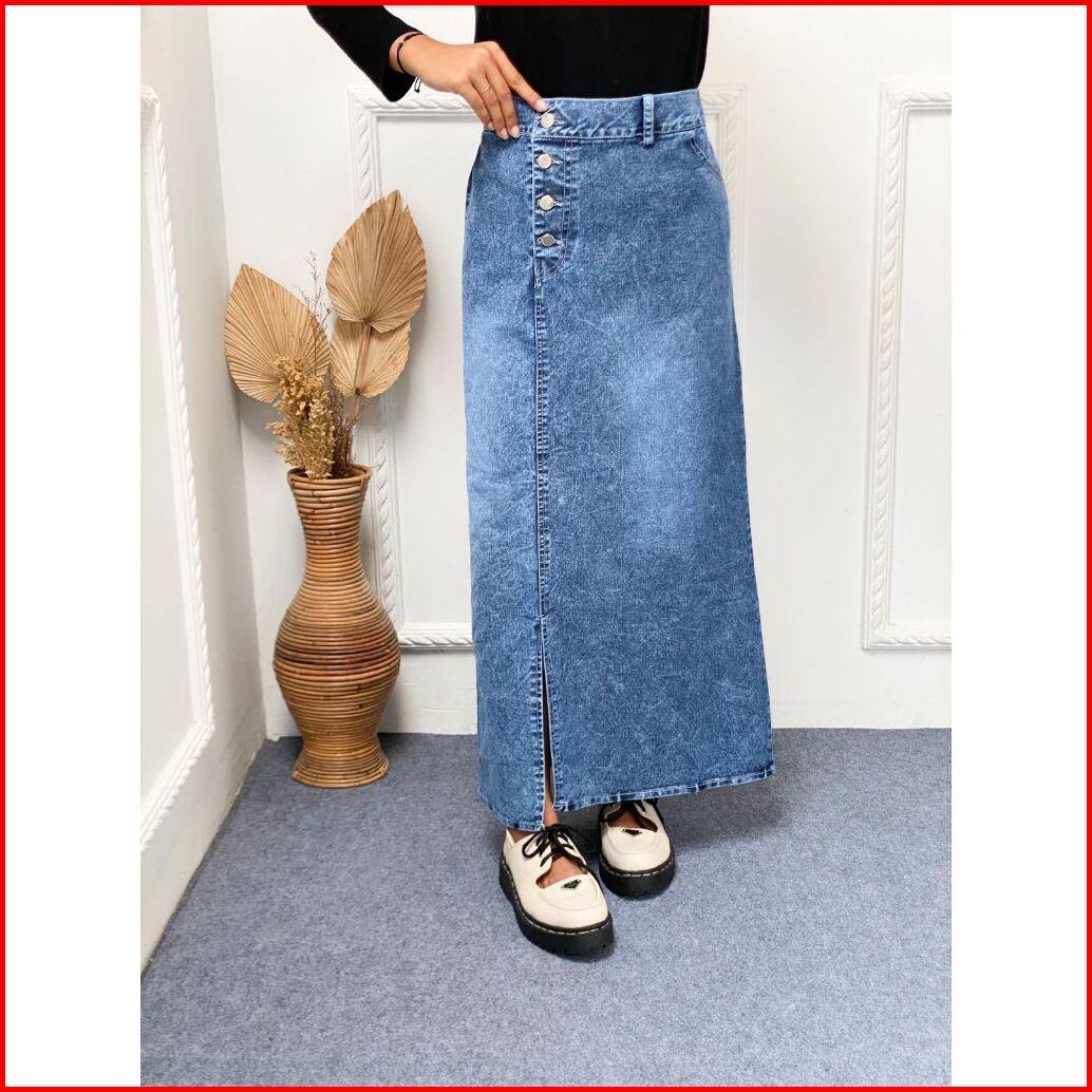 Rebecca Rok Jeans Wanita Kancing Belah Samping