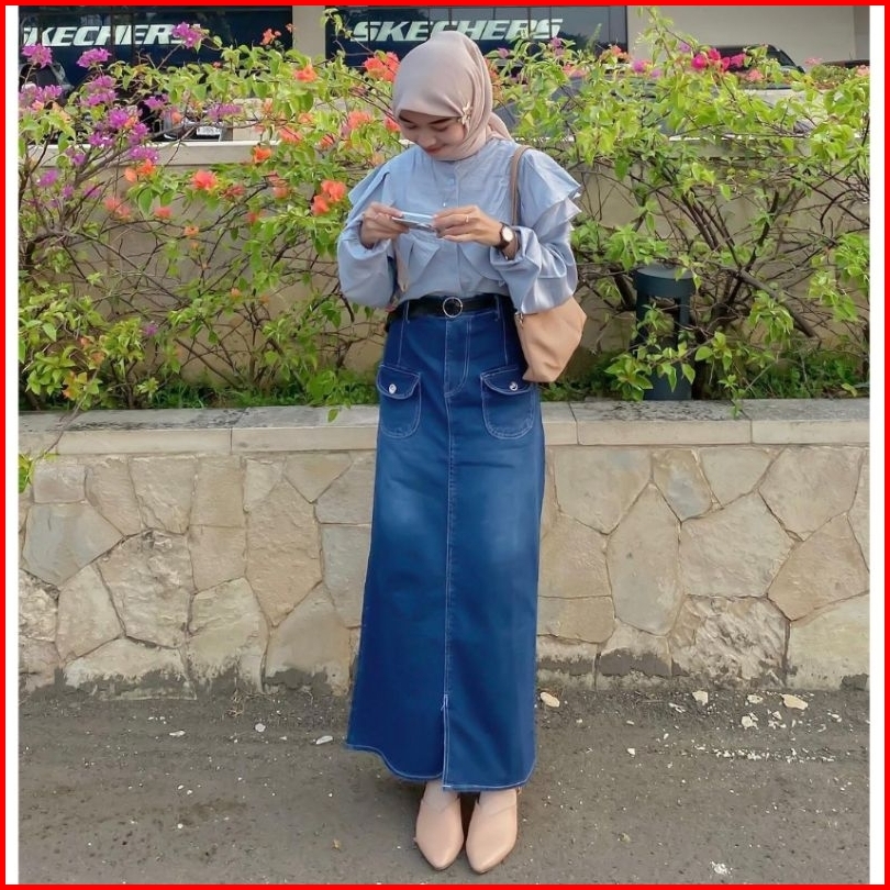 Rok Jeans Wanita Theana - Rok Jeans Span Skirt