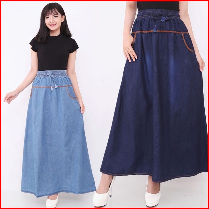Rok Jeans Wanita Panjang Oversize Jeans Skirt Original