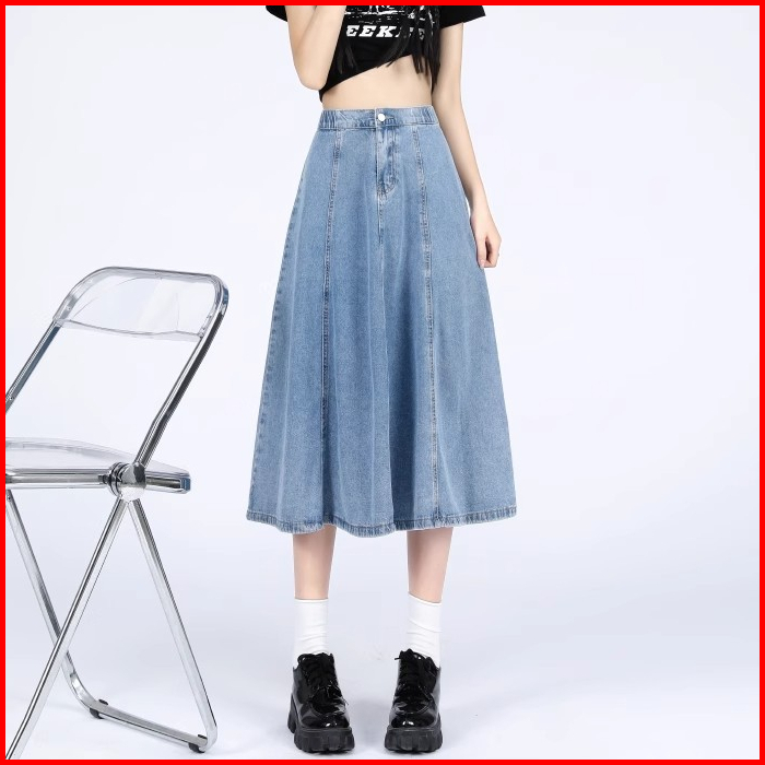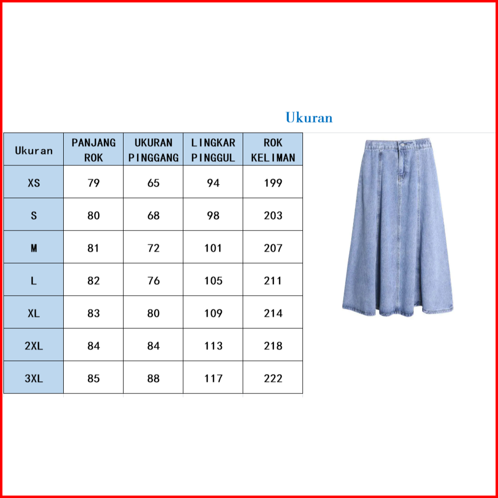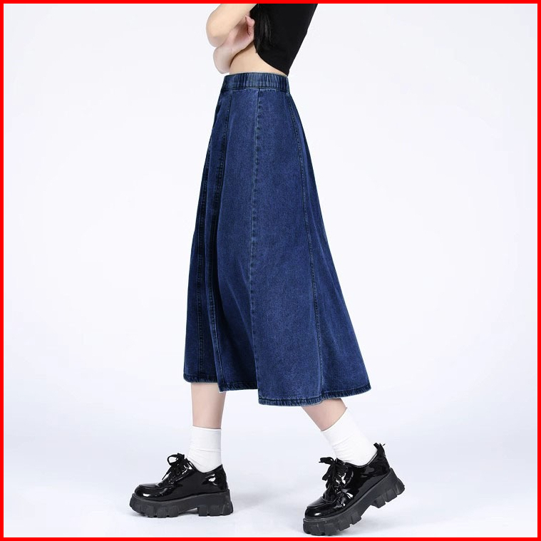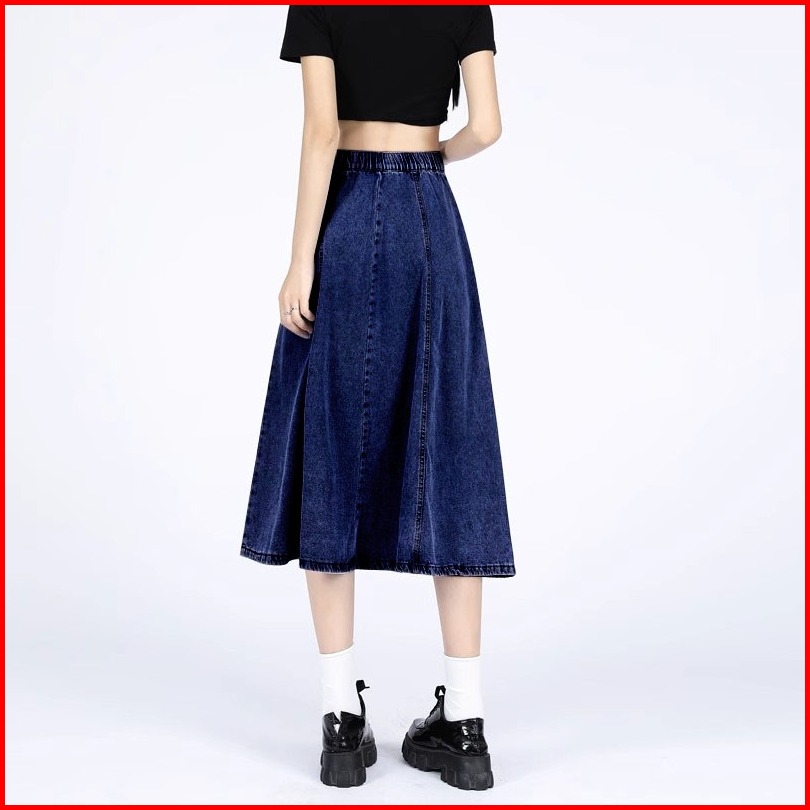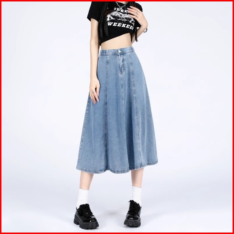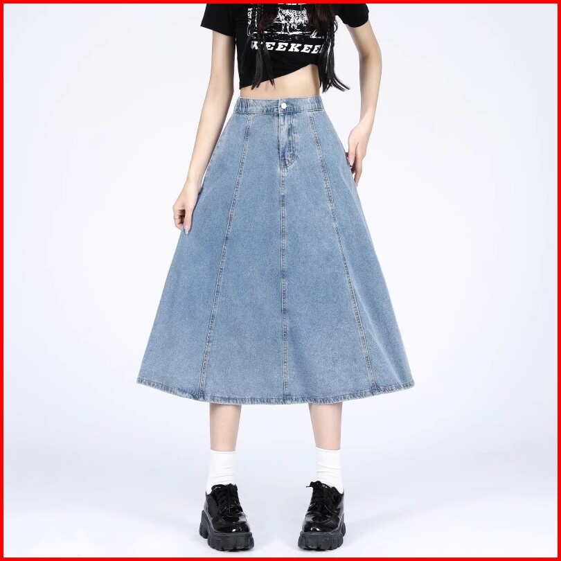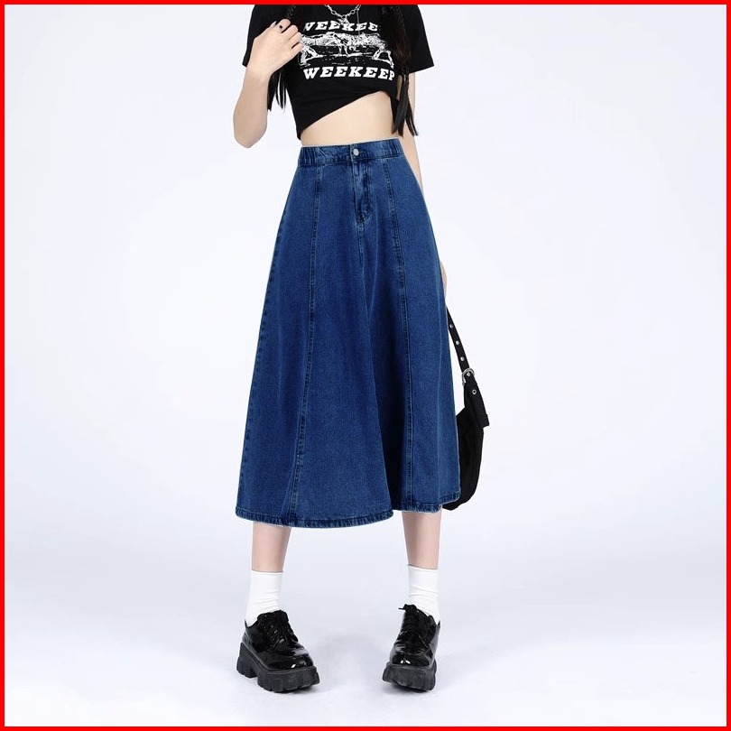 Elegan.girl Rok Korea Style Premium Rok Jeans Highwaist Wanita Biru Panjang Rok Jins Melar Wanita Plisket Skirt Kekinian