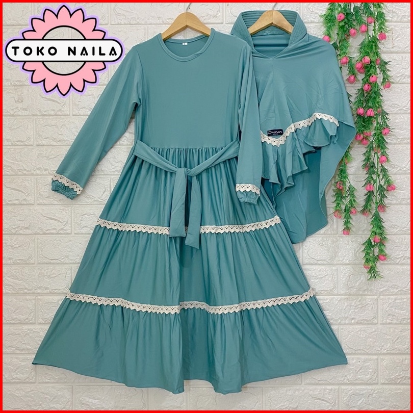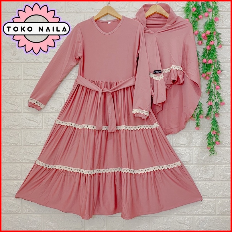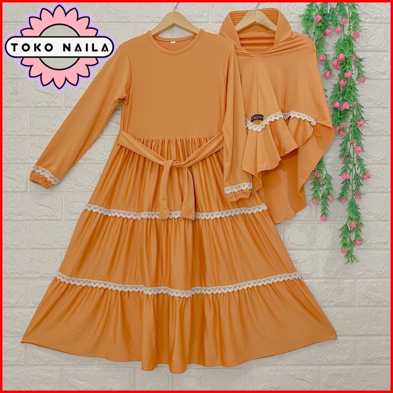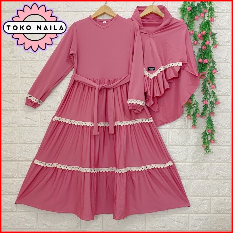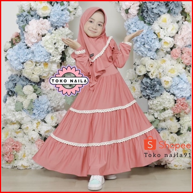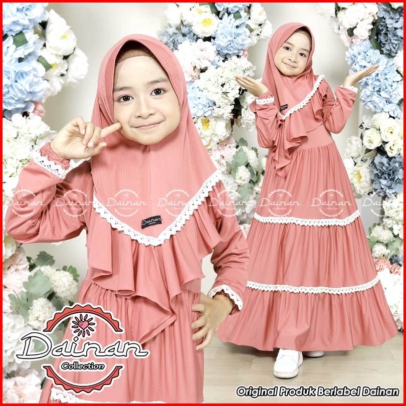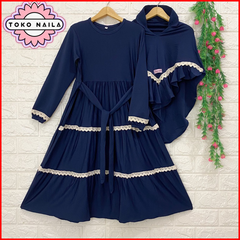 Dainan Gamis Anak Renda Tumpuk Usia 5-6 Tahun Jersey Super 1 Set Hijab