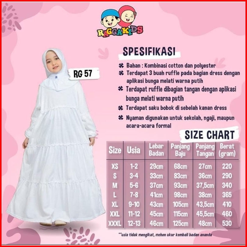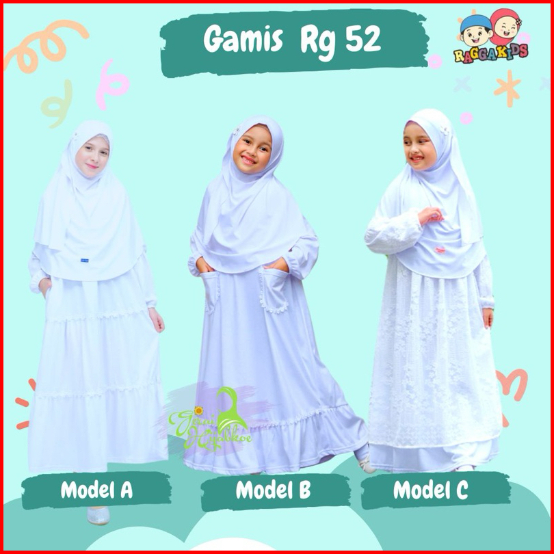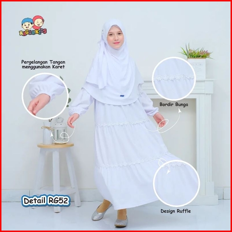Gamis Putih Polos Gamis Anak Untuk Manasik Haji Raggakids Rg 52 Usia 4-12 Tahun