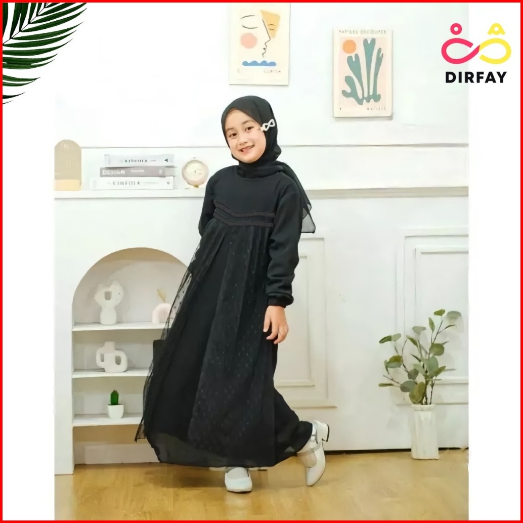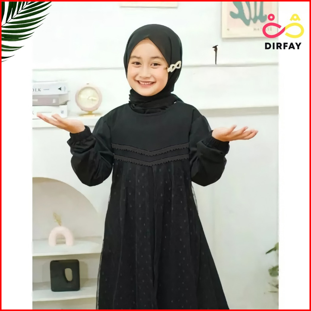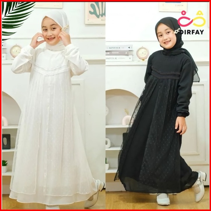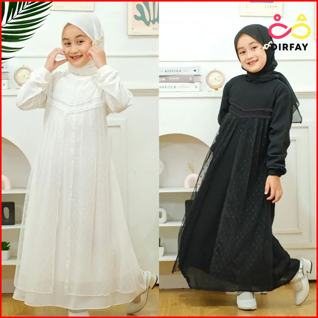 Shafa Dress Kids Free Hijap Gamis Anak Umur 2-13tahun Size S M L Xl Ceruty Babydool Mix Tile Dot Aplikasi Renda Gamis