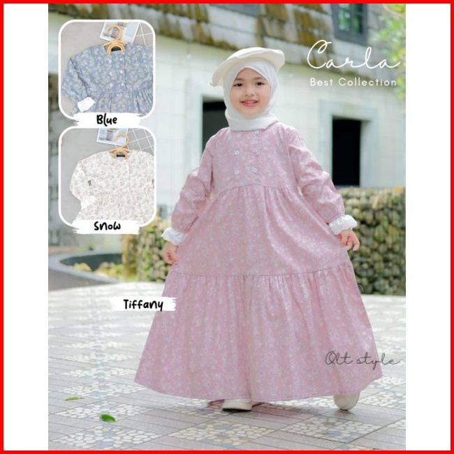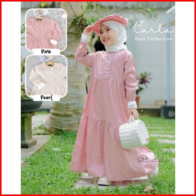 Ready Gamis Carla. Gamis Katun Jepang Anak Perempuan 2-10th. Tanpa Jilbab