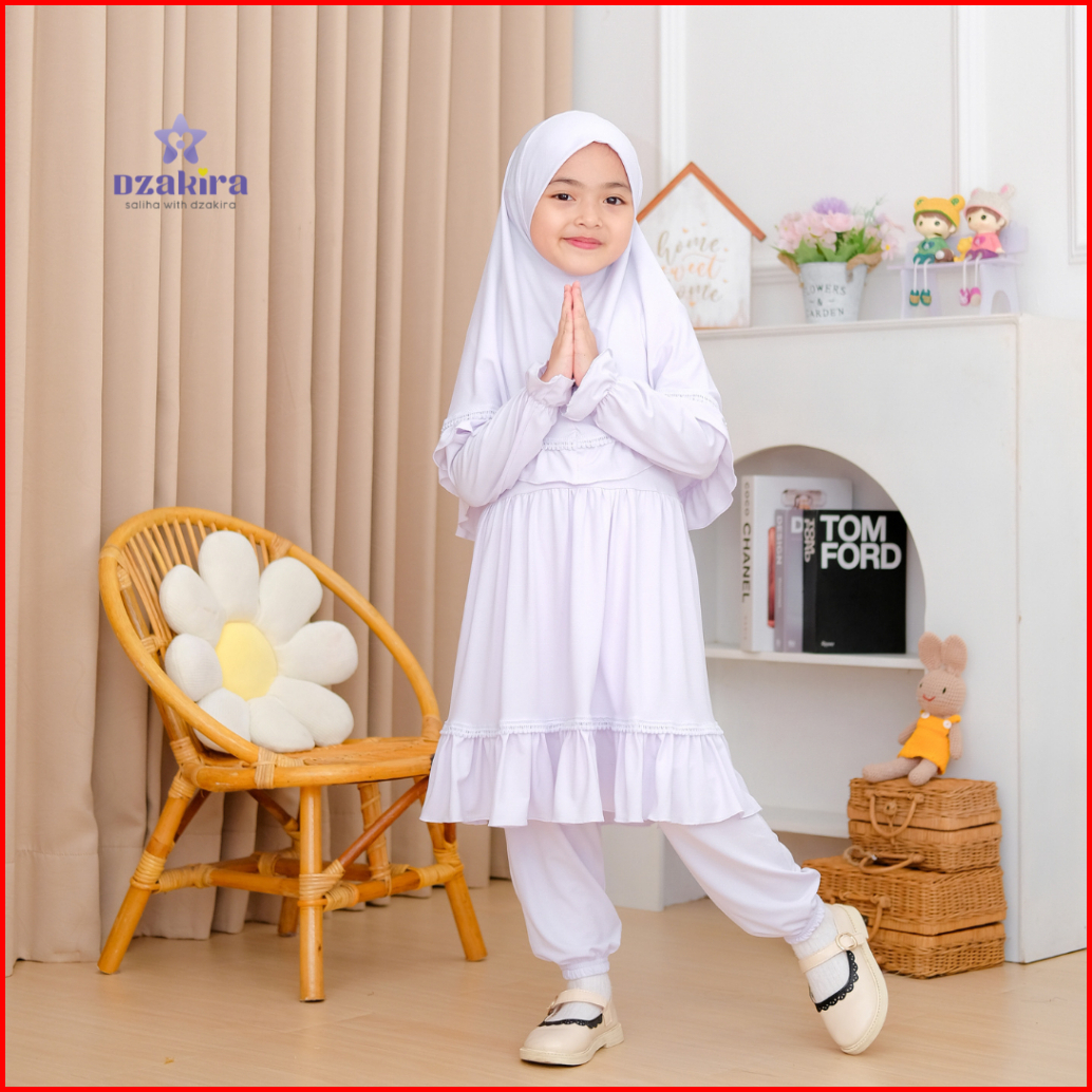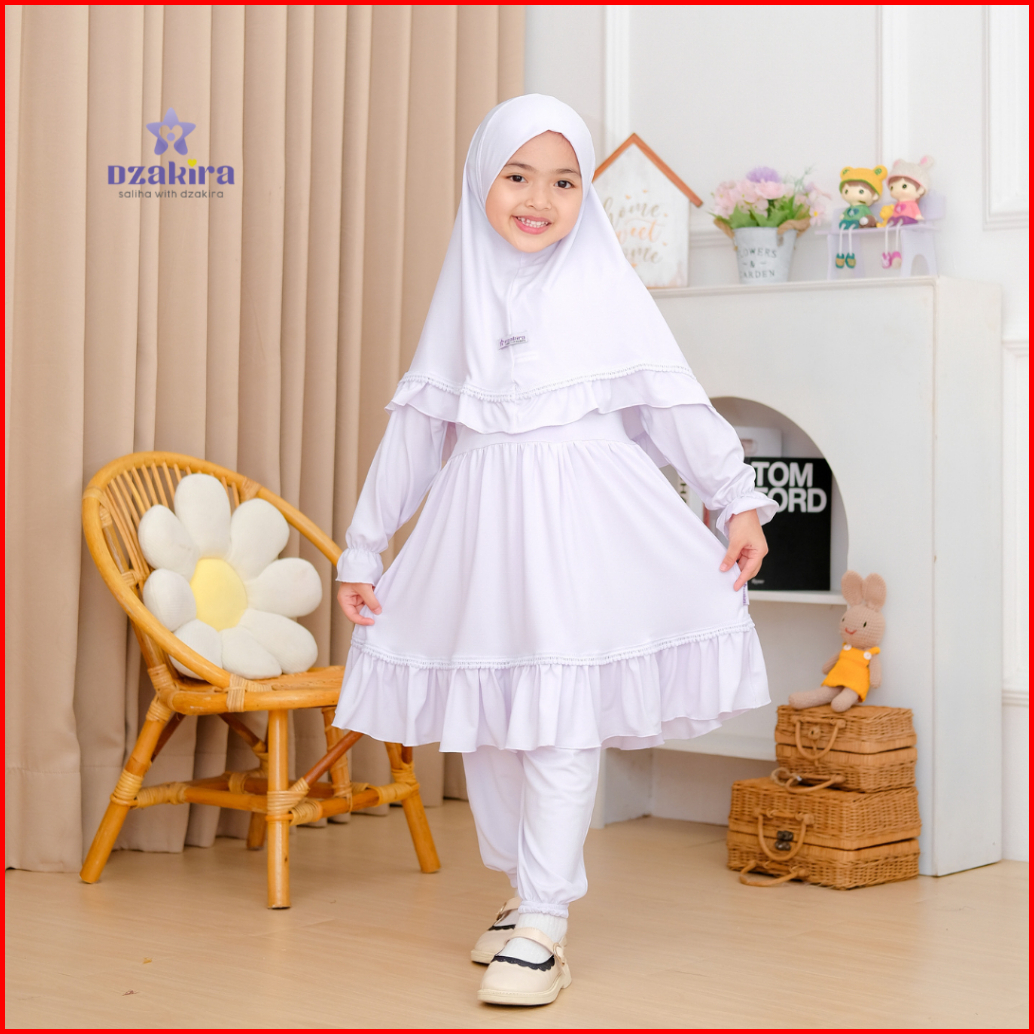 Oneset Putih Diana 1-10 Tahun Bahan Jersey Premium By Dzakira