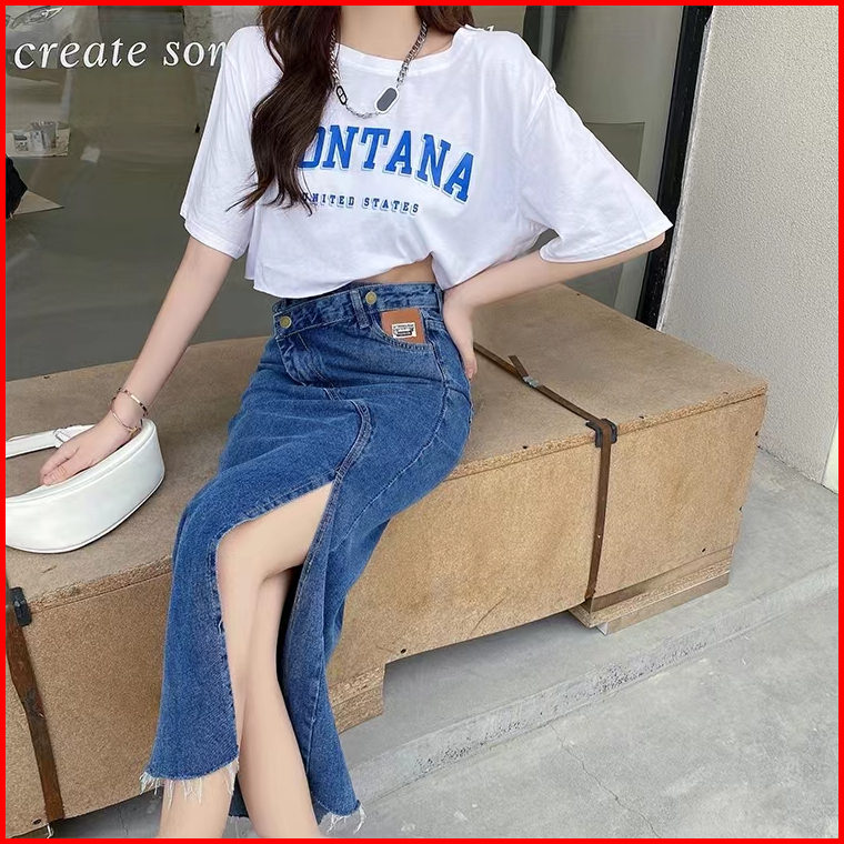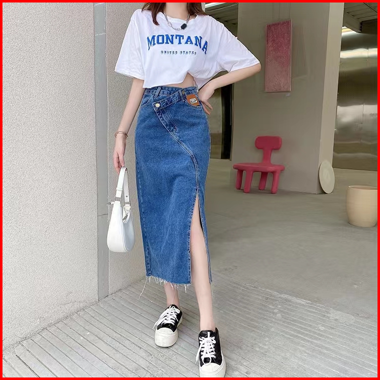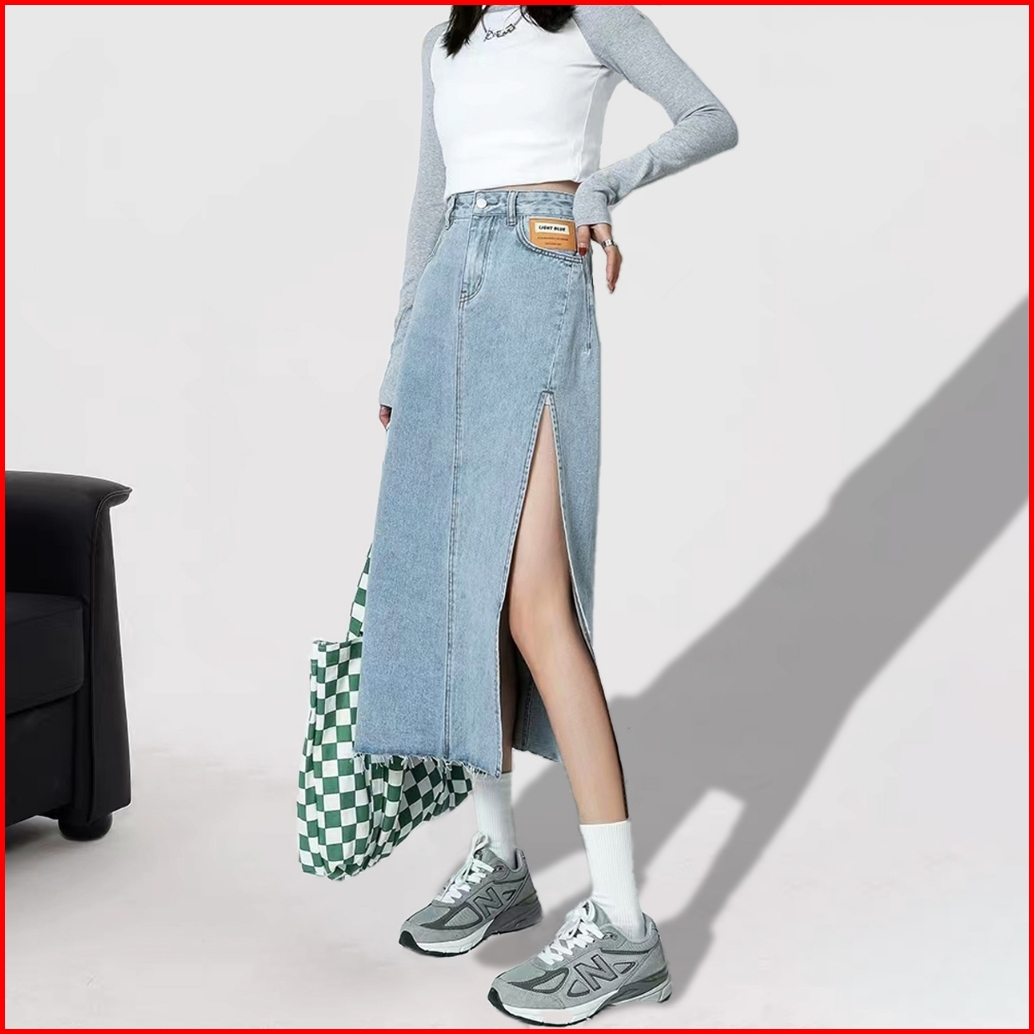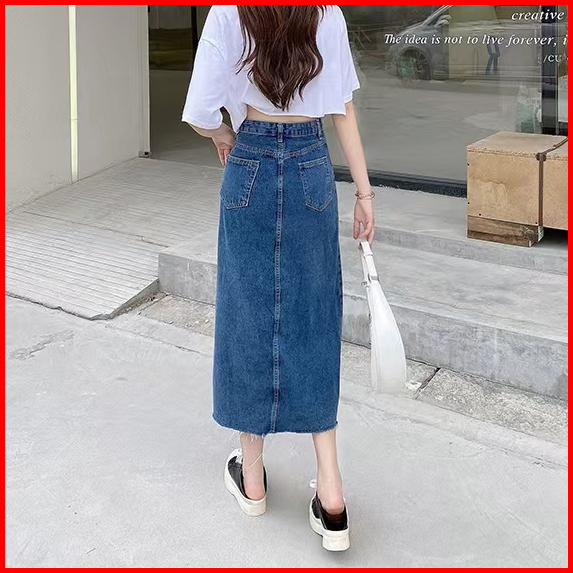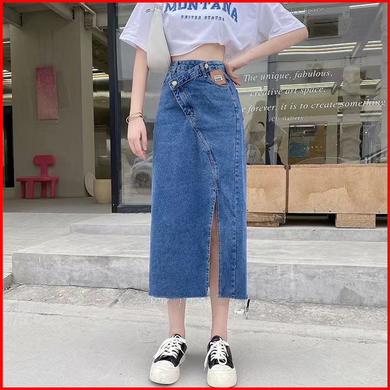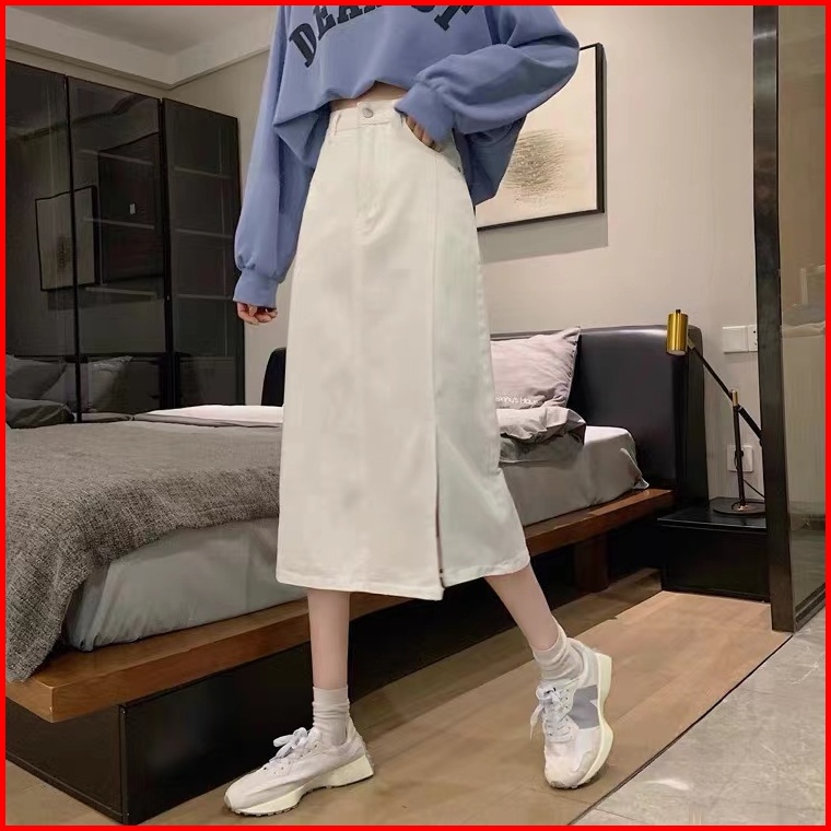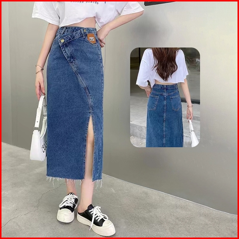 Fashion Wanita Rok Jeans Panjang Rok A Line 7 8 Rok Korean Style High Waist Rok Belah Samping Rok Jeans Jumbo