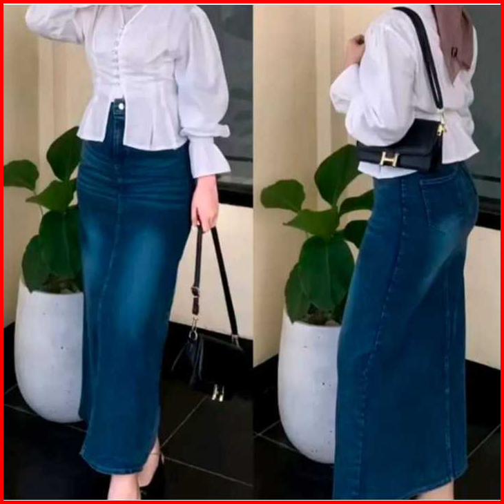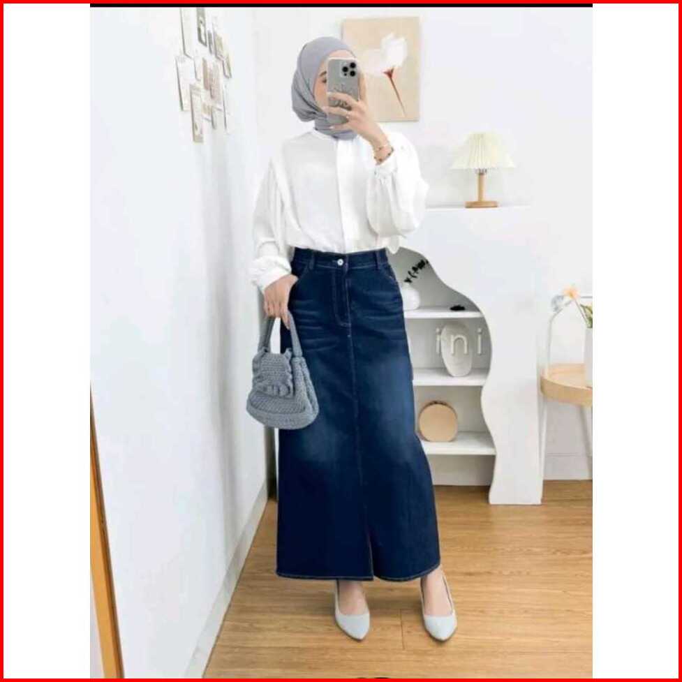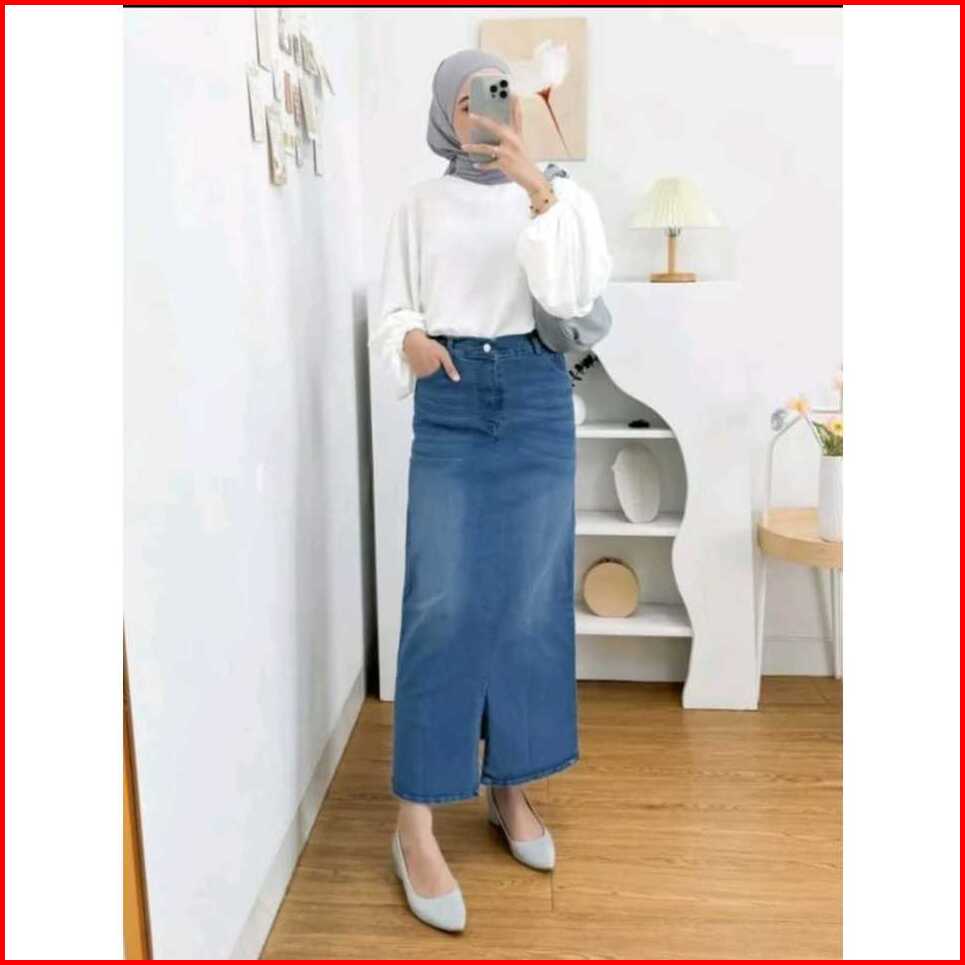 Rok Jeans Wanita Theana Highwaist Rok Panjang Span Korean Style Wanita