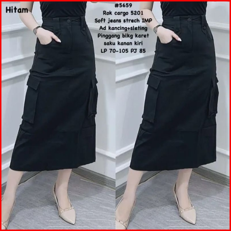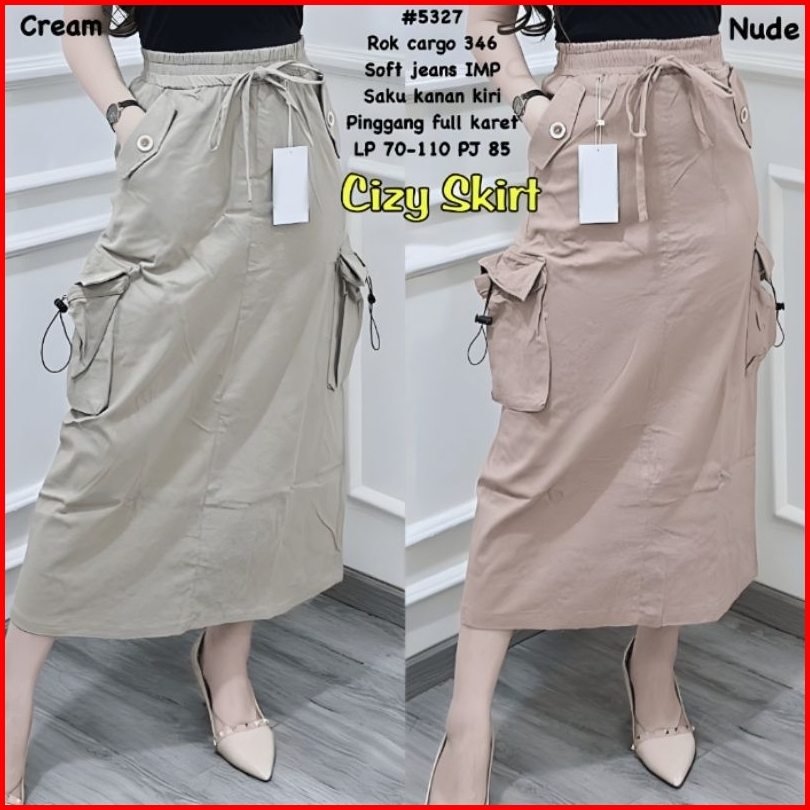 Rok Cargo Dizy Skirt Cargo Twill Combed Premium Stretch Wanita Maxi Skirt Lembut Melar