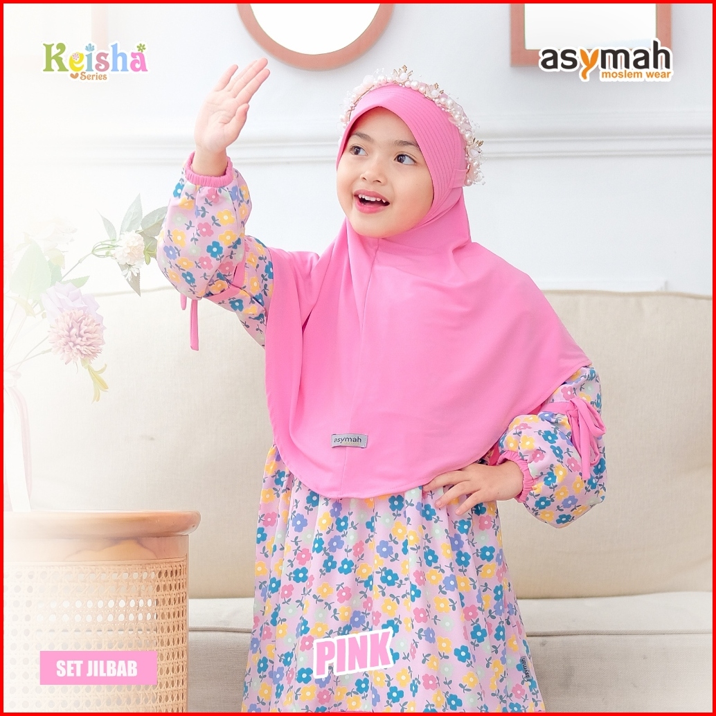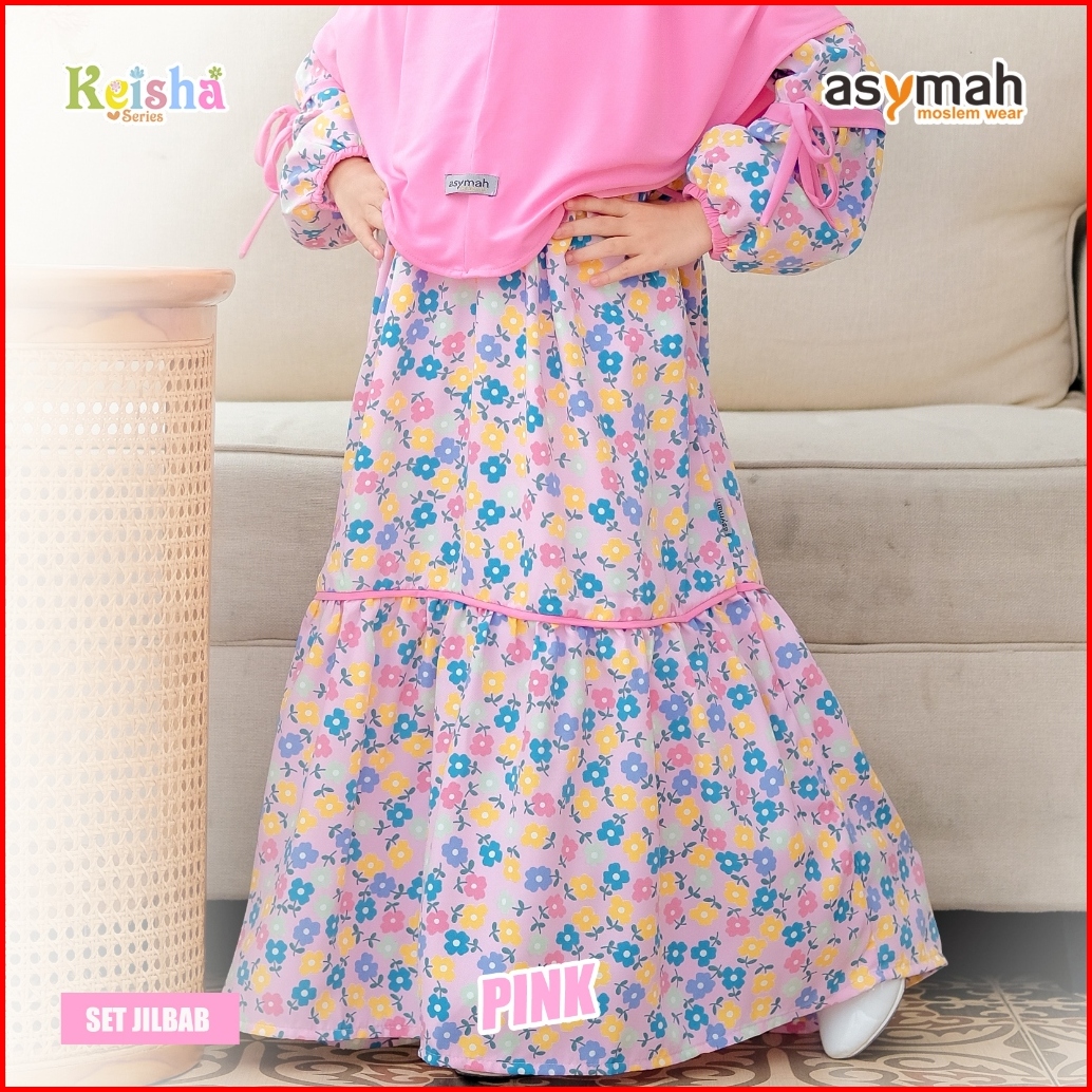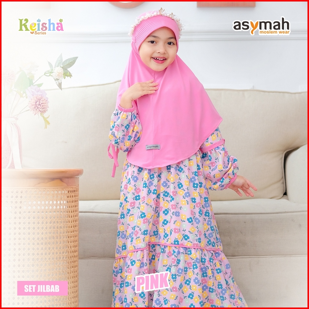 Set Jilbab Dress Anak Perempuan Muslim Keisha Series Warna Pink