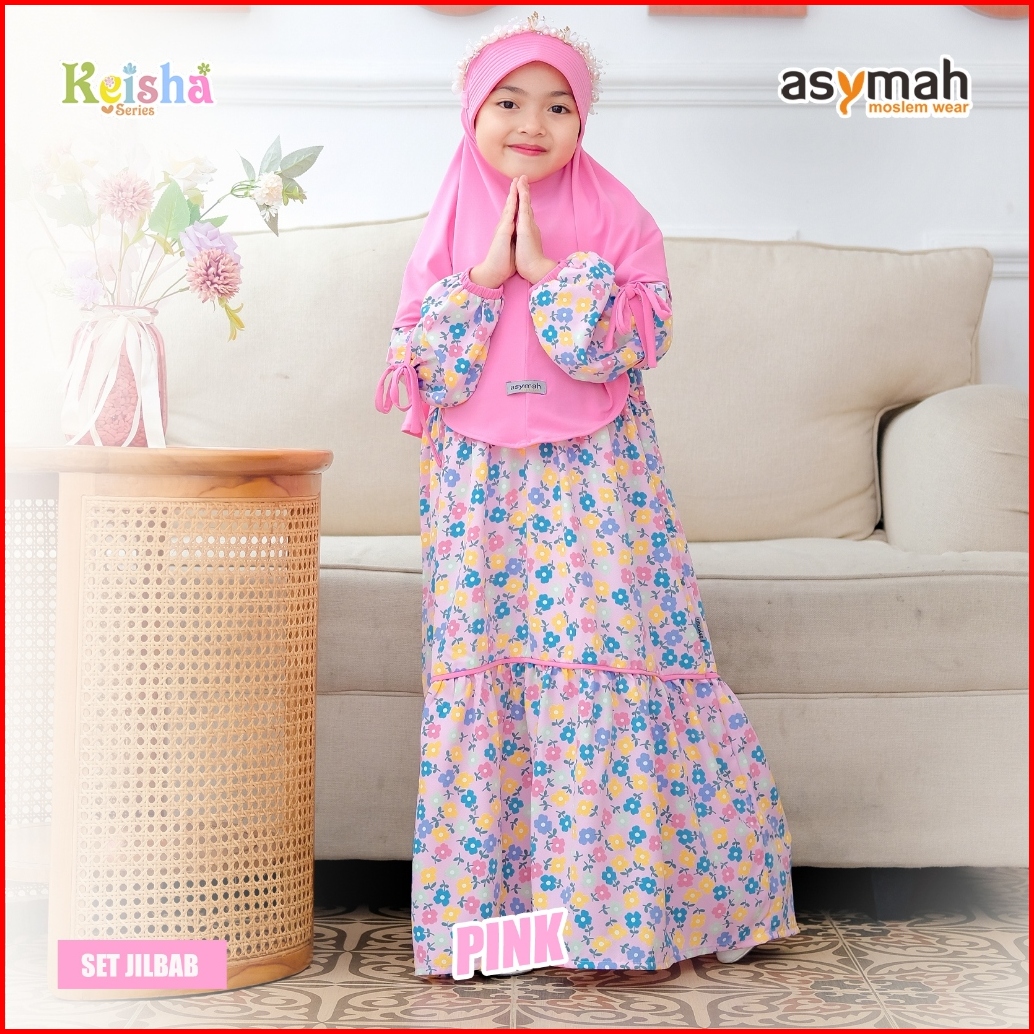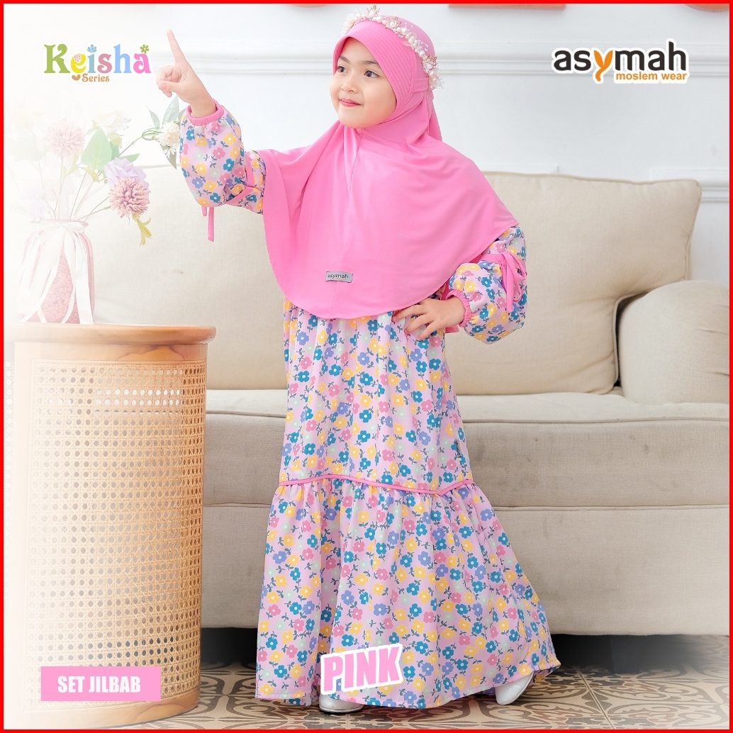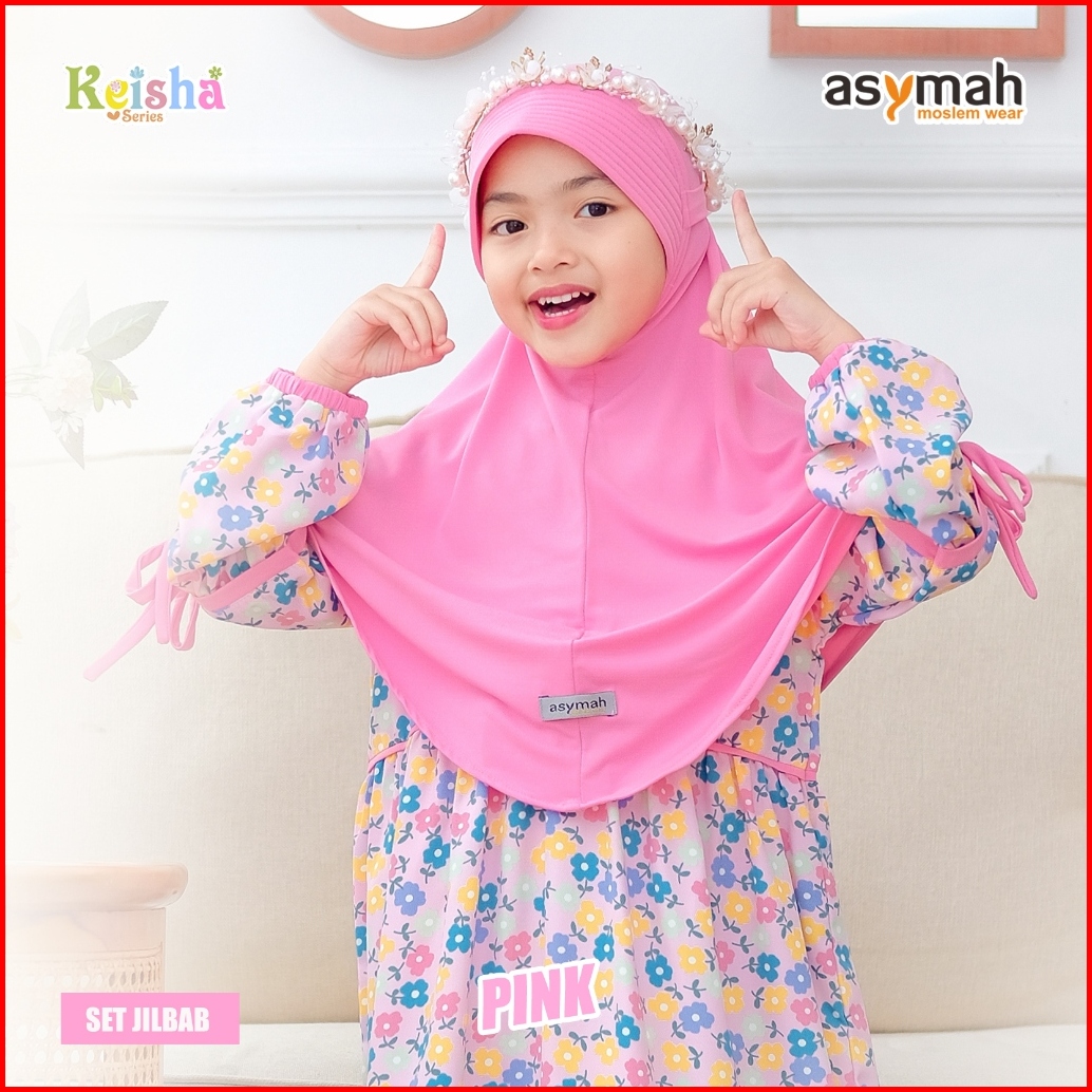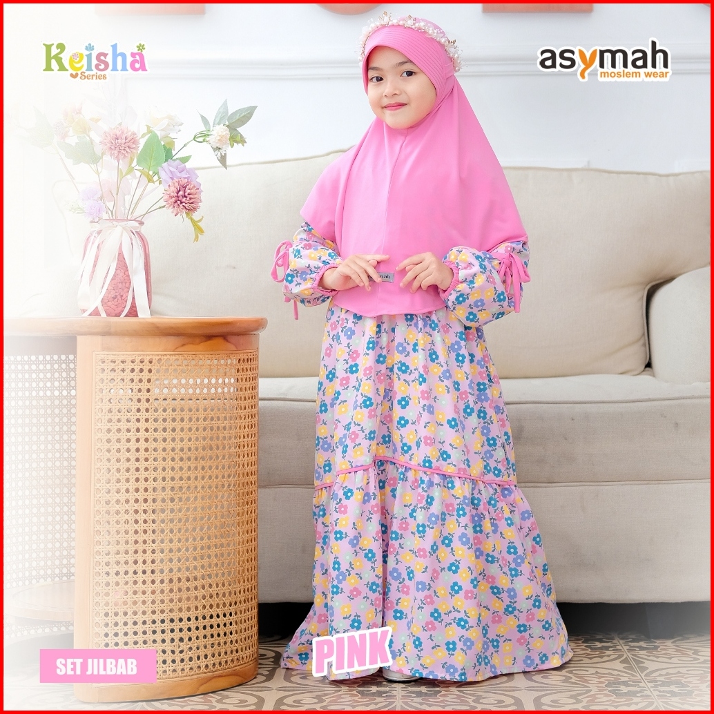 Set Jilbab Dress Anak Perempuan Muslim Keisha Series Warna Pink