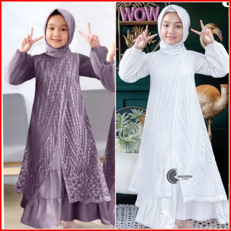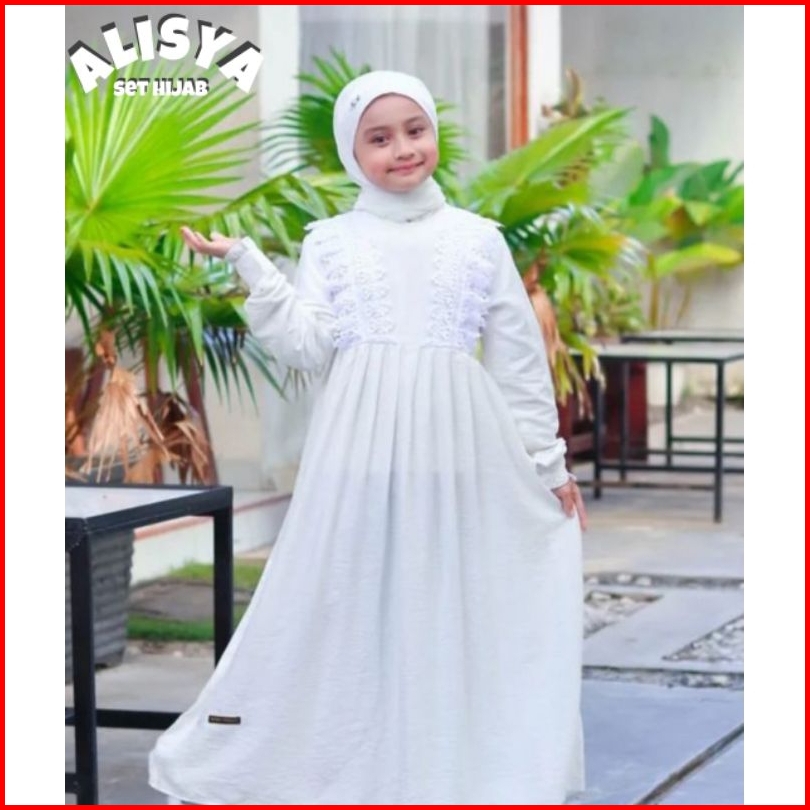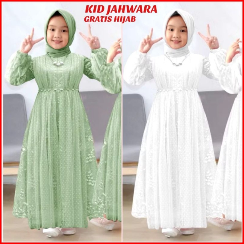 Free Hijab Gamis Anak Perempuan Putih 1-13 Tahun Brukat Anak Pesta Kondangan Manasik Haji Anak 2025