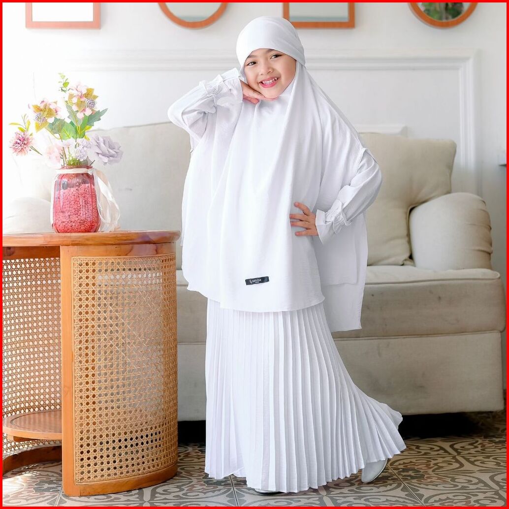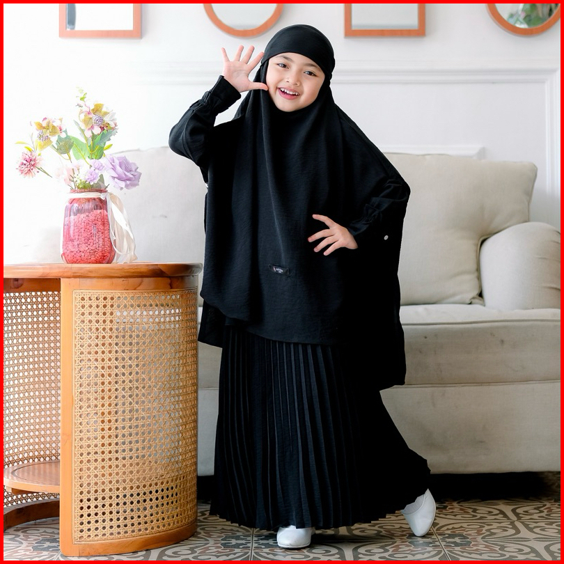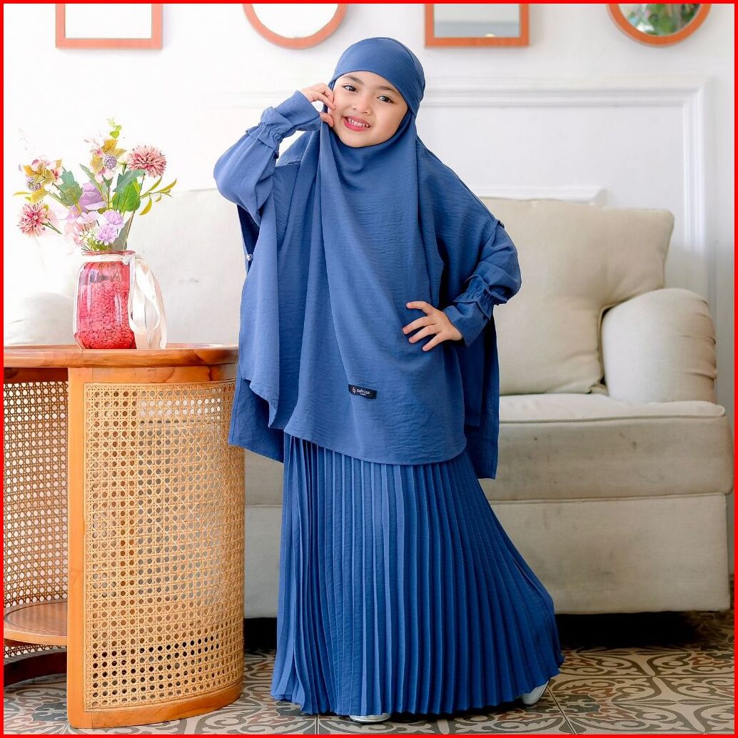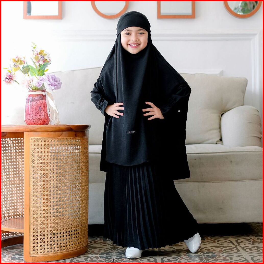 Salvina Kids - Gamis Anak Plisket French Khimar Free Cadar Usia 4 Sampai 15 Tahun Malika Set