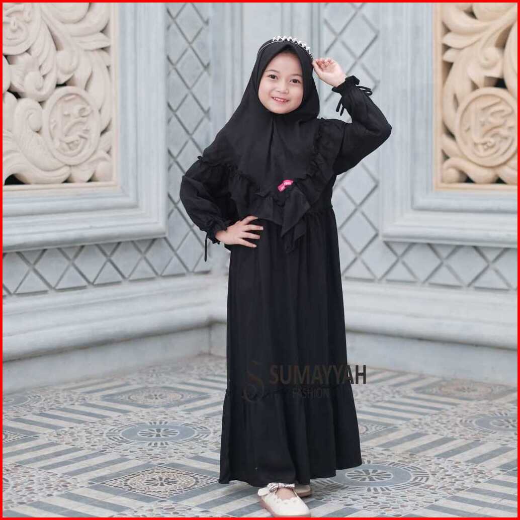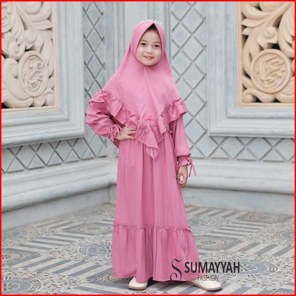 Gamis Putih Anak Perempuan Usia 1-10 Tahun Bahan Rayon Twill Premium Set Hijab