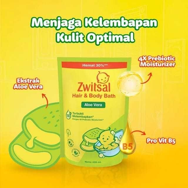 Zwitsal Baby Bath Hair And Body Sabun Mandi Shampo Bayi Natural Aloe Vera 400ml - BWT