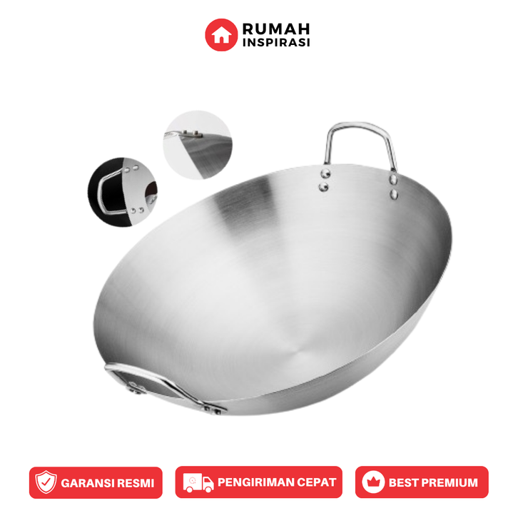 Wajan Stainless Dengan 6 Ukuran Dengan Pegangan Stainless Kuali Premium Premium Quality