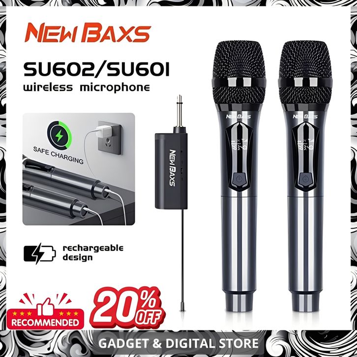Mic Wireless Bluetooth Karaoke NEW BAXS SU601/SU602 Double Digital ashley Microphone youtuber hp jepit clip on mikrofon