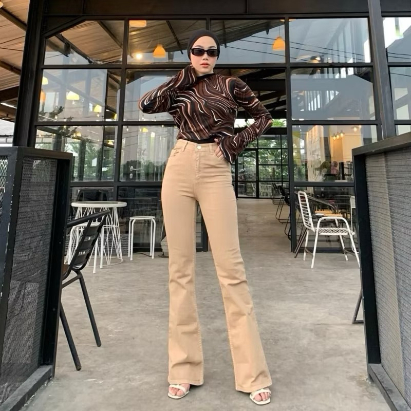 (Gratis Ongkir) Highwaist Cutbray Jeans Wanita - Celana Panjang Denim Cutbray