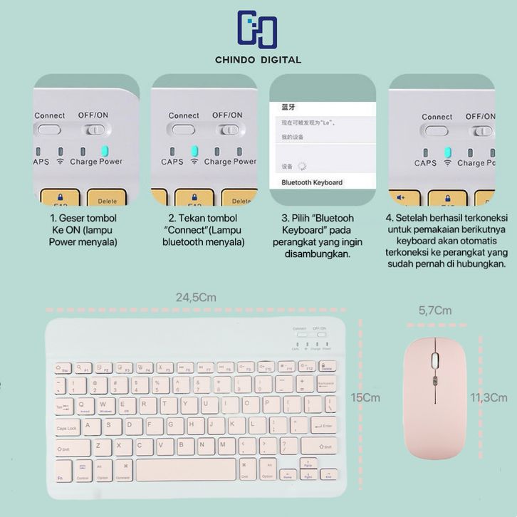 FREE ONGKIR Macaron 10 inch Wireless Bluetooth Keyboard Mouse Set Lightweight Portable Colorful