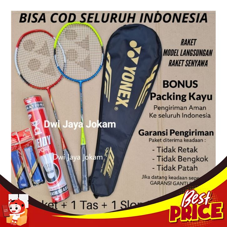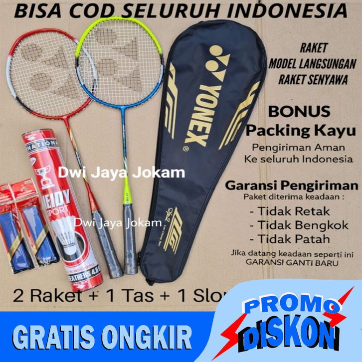 Paket Raket Badminton Dengan Shuttlecock Tas / Satuan Bonus Grip Handuk Free Packing kayu