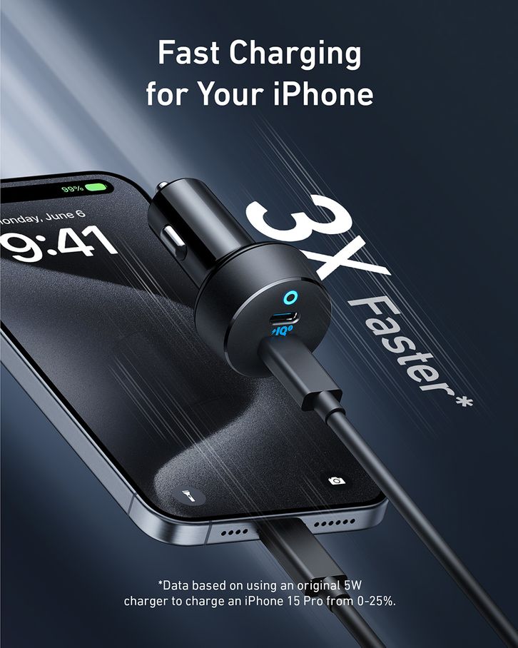 Anker PowerDrive III Duo USB-C Car Charger fast charging 40w 2-port each 20W power IQ 3.0 Type C - A2724