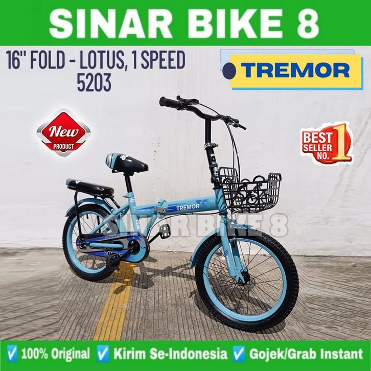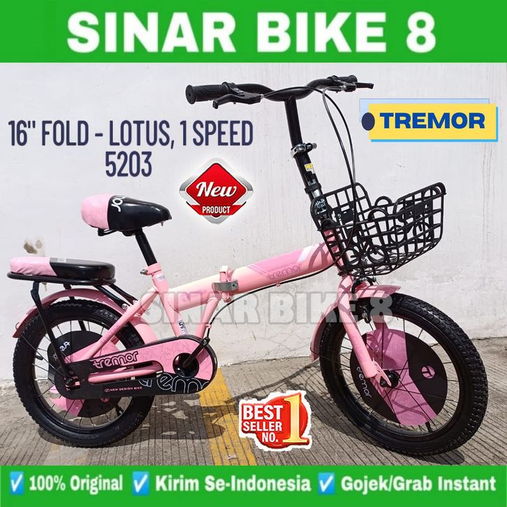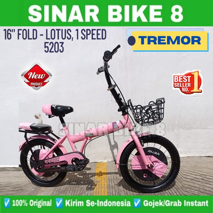 Sepeda Lipat Anak TREMOR FOLD V01 LOTUS dan AXXIL 616 Ukuran 16 18 Inch Usia 4-8 Tahun Keranjang Laki Perempuan
