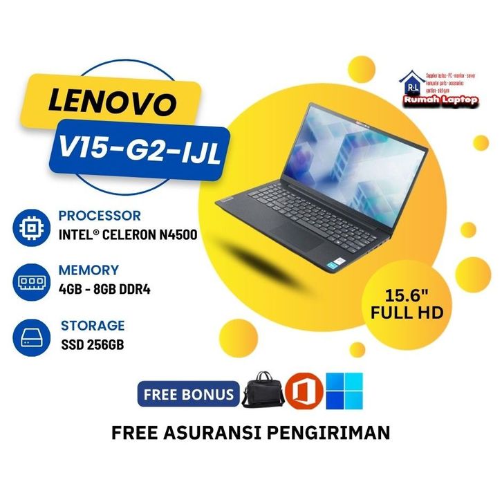 Laptop Lenovo V15 - G2 IJL Intel N4500 Ram 4gb / 8gb Ssd 256GB Nvme Layar 15.6" Baru 3 Jutaan