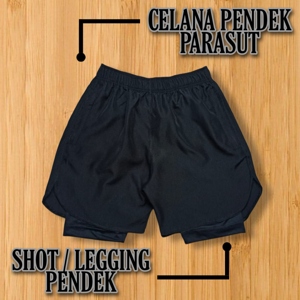 [2 IN 1] Celana Running + Shot/Legging Pendek / Celana Lari / Celana Pendek Parasut / Celana Volly / Celana Olahraga Sak