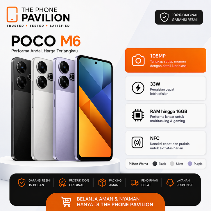 [Mall] POCO M6 (8GB/256GB) | Kamera utama 108 MP kelas pro | Helio G91-Ultra yang tangguh